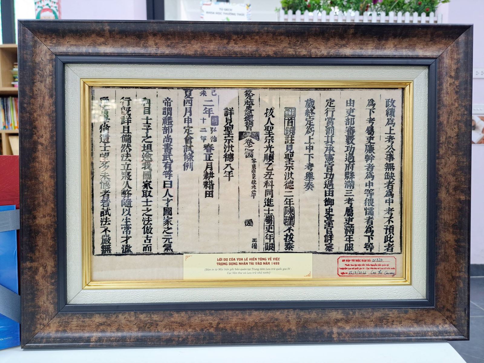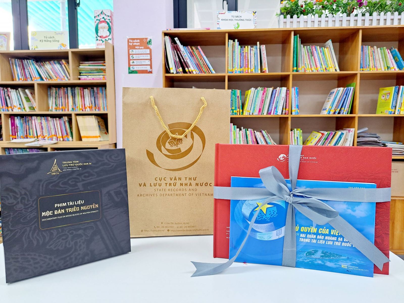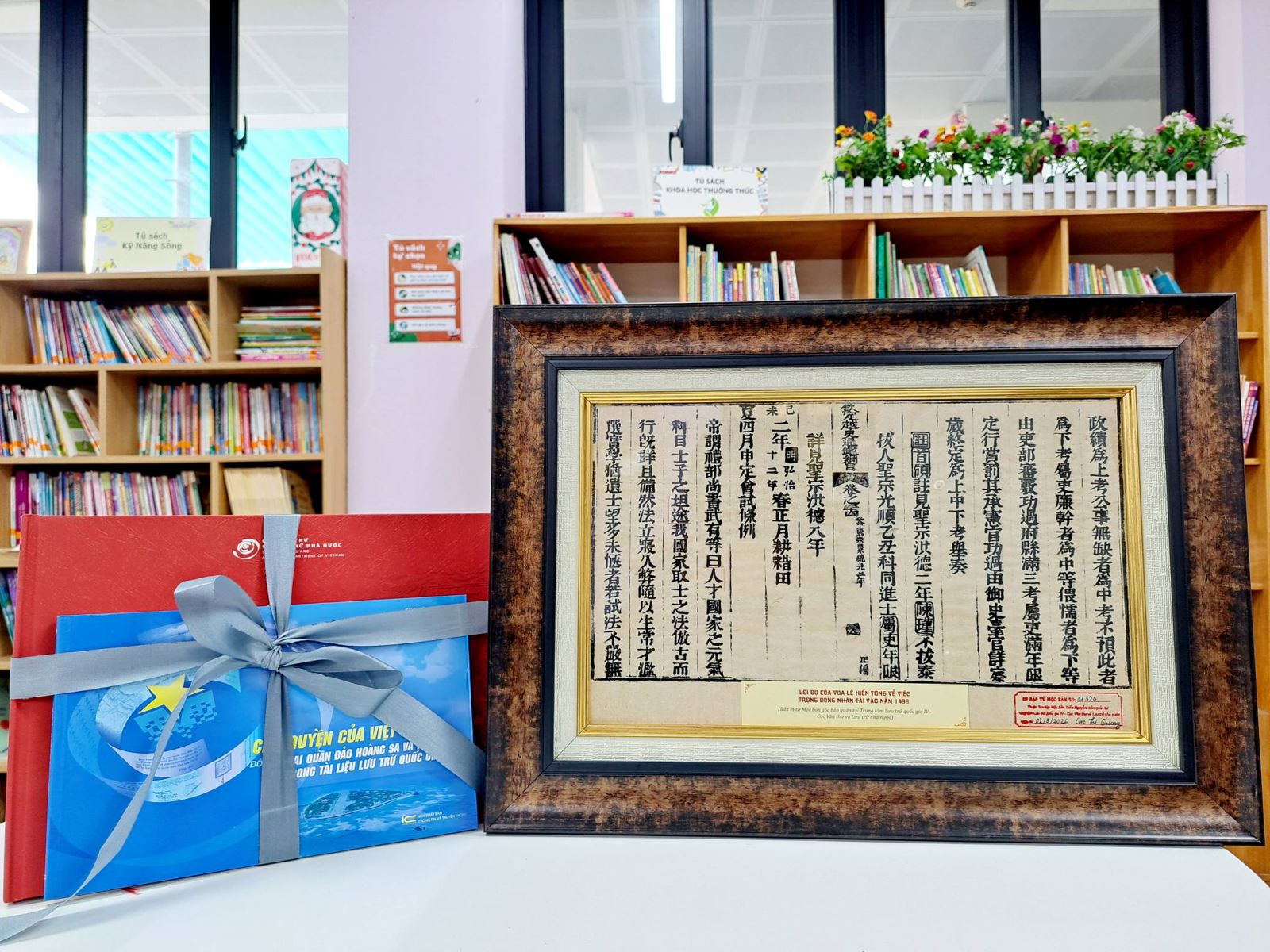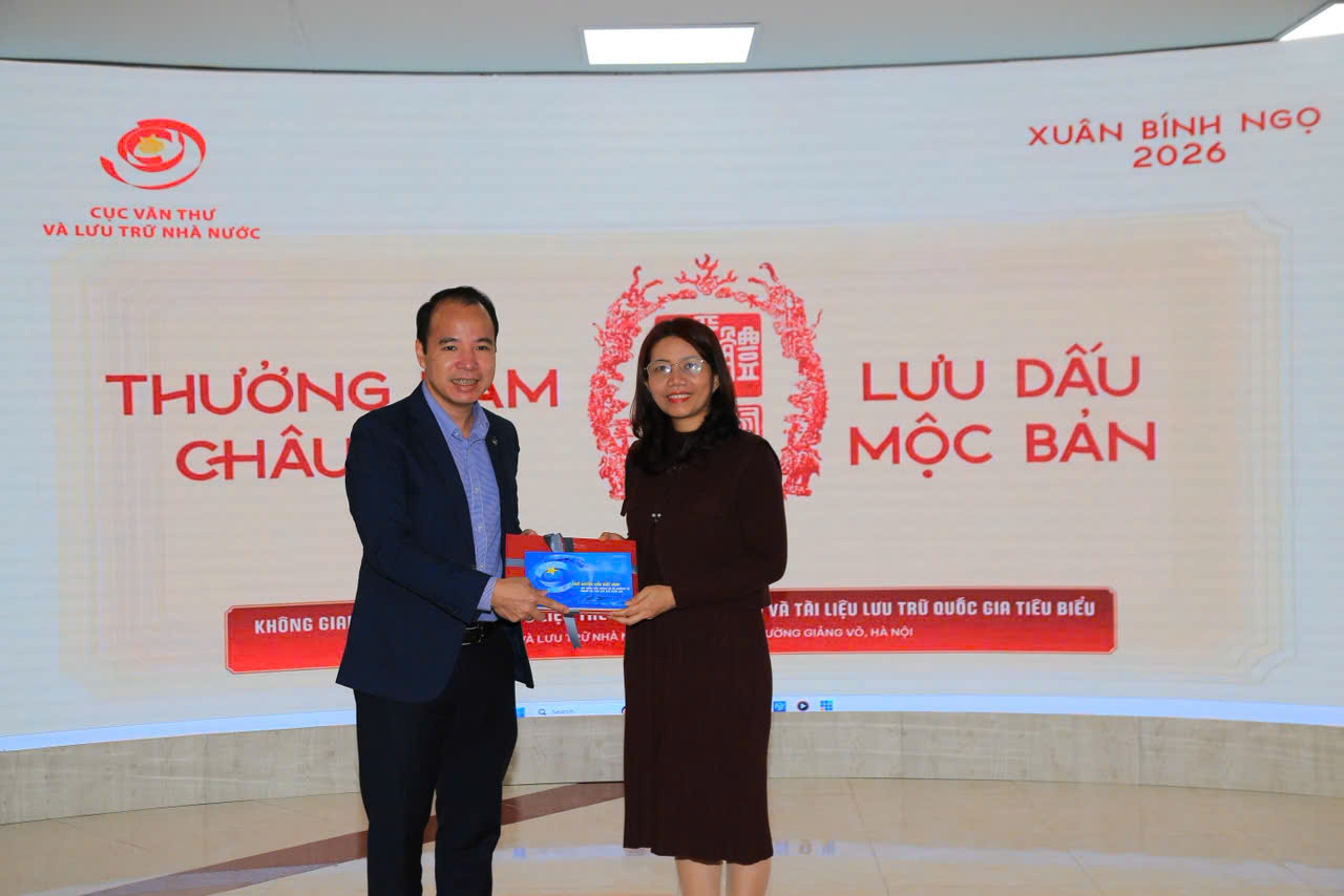 Một trong những dấu ấn đáng nhớ nhất của chương trình là khi đại diện Cục Văn thư và Lưu trữ nhà nước – Cục phó Cục lưu trữ đã trao tặng cho nhà trường một ấn phẩm vô cùng đặc biệt. Đây là món quà độc bản, mang giá trị văn hóa và lịch sử sâu sắc được trích xuất từ nguồn tư liệu quý giá của quốc gia.