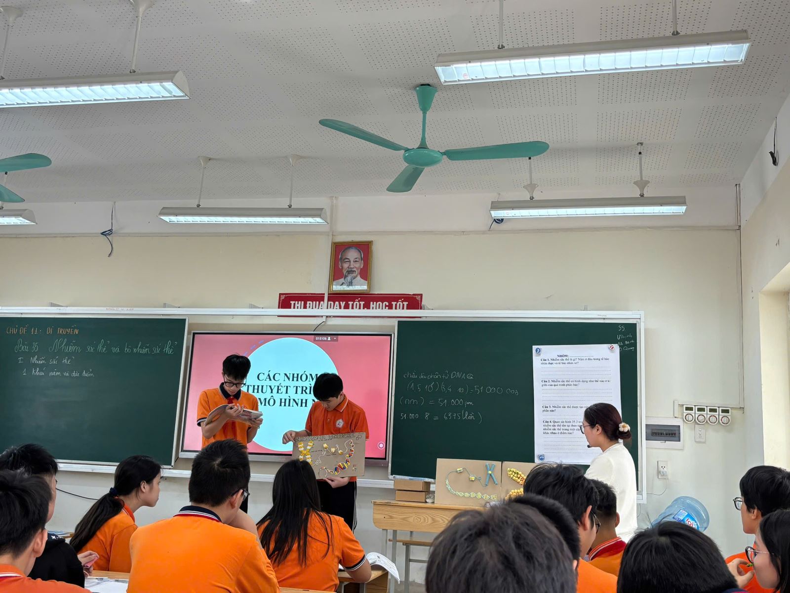 Hội giảng năm nay không còn là những tiết dạy trình diễn khuôn mẫu mà thay vào đó, mỗi tiết học là một minh chứng sống động cho sự sáng tạo, bản lĩnh và tâm huyết của các thầy cô. Nhiều giáo viên lựa chọn những nội dung mới mẻ, mạnh dạn thử nghiệm phương pháp sáng tạo, kết hợp công nghệ và các hoạt động trải nghiệm để tạo nên những giờ học hấp dẫn, giàu tính khám phá. Ở môn Toán, các cô giáo trẻ Bùi Thảo Nhung, Lê Thuỳ Linh, Nguyễn Mai Chi đã tổ chức những tiết học rất thành công với những hoạt động như làm việc nhóm, trao đổi chiến lược giải, trình bày lập luận và phản biện. Những bài toán gắn với tình huống thực tiễn giúp lớp học trở nên sôi nổi, phát triển năng lực tư duy và sự tự tin của học sinh. Đặc biệt các cô giáo đều chú trọng gắn liền lý thuyết với những tình huống thực tế giúp học sinh nắm chắc kiến thức. Đối với môn Sinh học, cô giáo Hoàng Thị Vân Anh và cô giáo Phạm Thị Minh Nguyệt lại gây ấn tượng bởi khả năng khơi gợi sự tò mò khoa học. Qua mô hình, hình ảnh trực quan và clip minh họa, học sinh được quan sát – phân tích – rút ra kết luận. Thế giới tự nhiên hiện lên rất đa dạng, sinh động và đấy mới lạ. Và sôi nổi nhất là tiết dạy Âm nhạc của cô giáo Nguyễn Thị Hương Giang. Cả tập thể lớp cùng hoà ca theo giọng hát và phím đàn của cô giáo. Không chỉ hát, các bạn học sinh còn vận động theo nhịp, thực hành nhạc cụ và tham gia các hoạt động cảm thụ âm nhạc. Những trải nghiệm nghệ thuật ấy giúp các em thêm yêu thích môn học và bộc lộ năng khiếu của bản thân. Điểm chung nổi bật của các tiết dạy là sự quan tâm, hỗ trợ của giáo viên đến từng đối tượng học sinh. Thầy cô chú trọng gợi mở, khích lệ, nhận xét kịp thời để tạo động lực và sự tự tin cho các em. Nhiều bài tập được gắn kết khéo léo với đời sống, giúp học sinh hiểu rõ ý nghĩa của kiến thức và phát triển năng lực vận dụng. Bên cạnh những thành công đáng ghi nhận, hội thi cũng mở ra những cơ hội để giáo viên tự điều chỉnh, hoàn thiện hơn về phân bổ thời gian, hỗ trợ nhóm yếu hoặc tổ chức hoạt động hiệu quả hơn. Đây chính là giá trị thực tiễn quan trọng của sinh hoạt chuyên môn.
