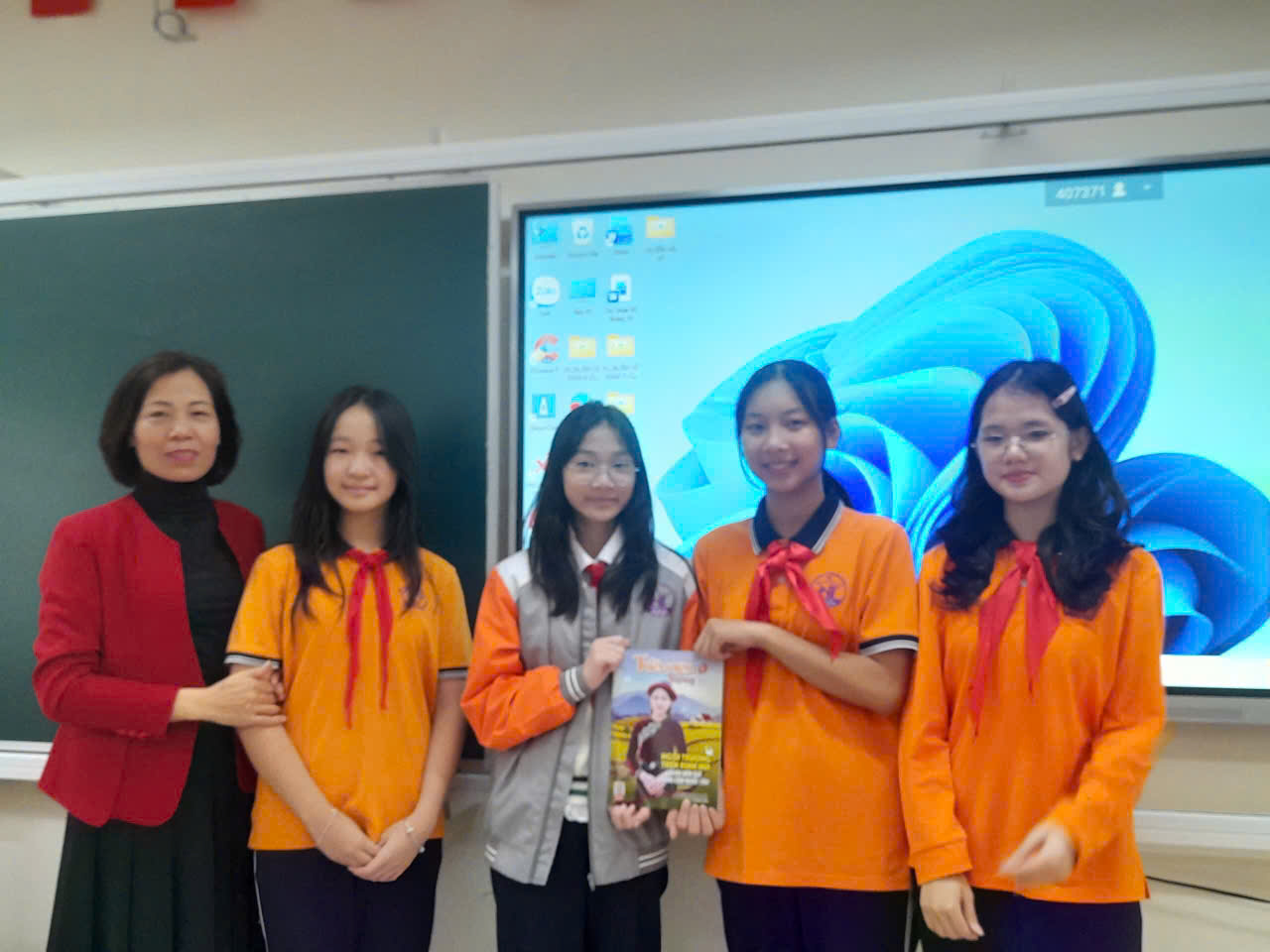 Sáng thứ Hai, các chị phụ trách đã đến gửi báo mới cho lớp 7A5 – Trường THCS Nguyễn Trãi. Đại diện lớp, bạn Minh Anh và bạn Chúc An, thay mặt tập thể lên nhận báo trong không khí nghiêm túc và đầy trách nhiệm.