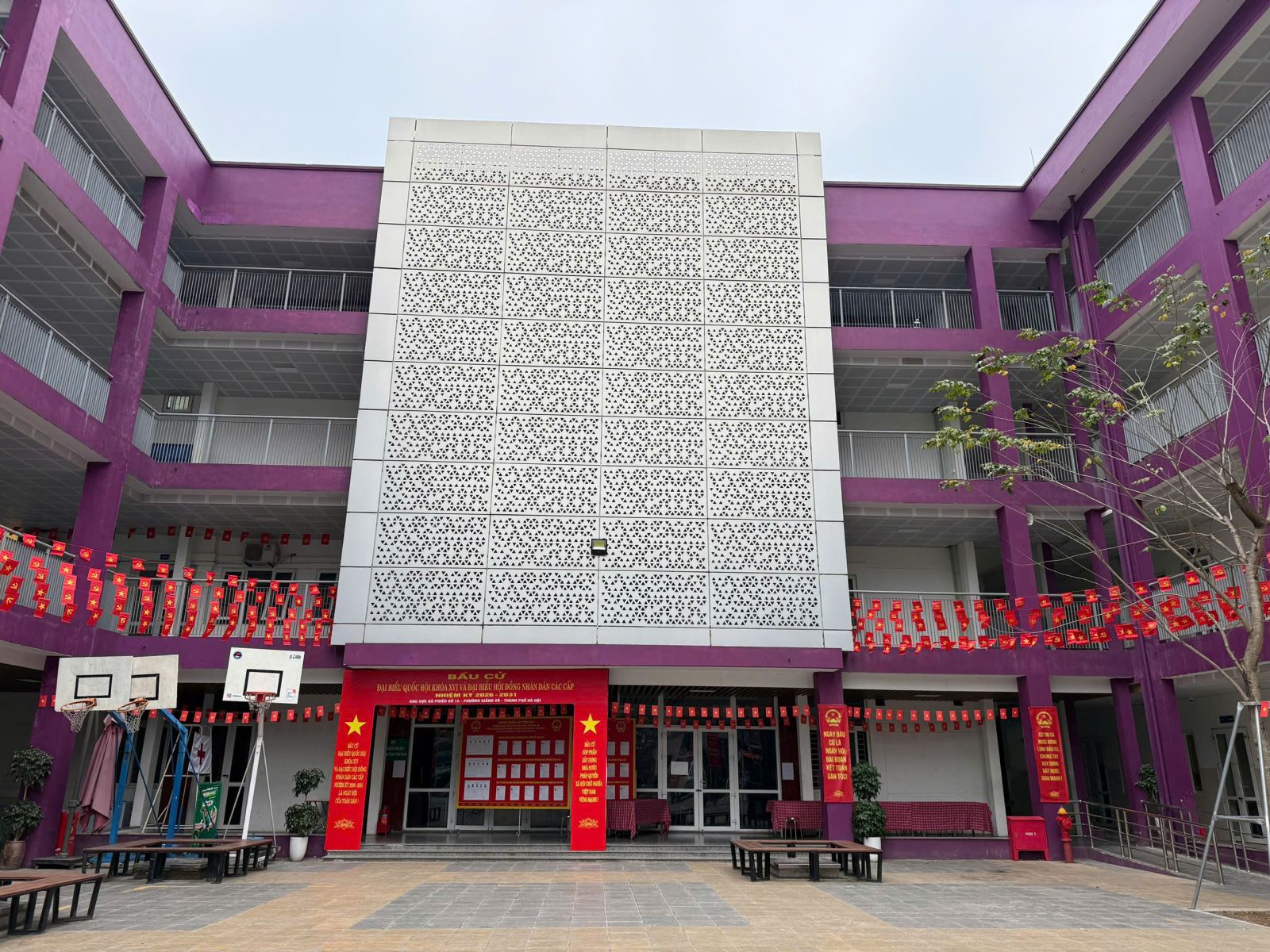 Từ nhiều ngày qua, khuôn viên nhà trường như khoác lên mình tấm áo mới. Cờ đỏ sao vàng tung bay rực rỡ, băng rôn, khẩu hiệu được trang trí trang trọng, tạo nên một không gian vừa trang nghiêm vừa rực rỡ sắc màu. Các thầy cô giáo cùng cán bộ Mặt trận Tổ quốc và các tổ dân phố đã cùng nhau tổng vệ sinh, sắp xếp khu vực bỏ phiếu, chuẩn bị bàn ghế, khu vực đón tiếp cử tri một cách chu đáo, khoa học.