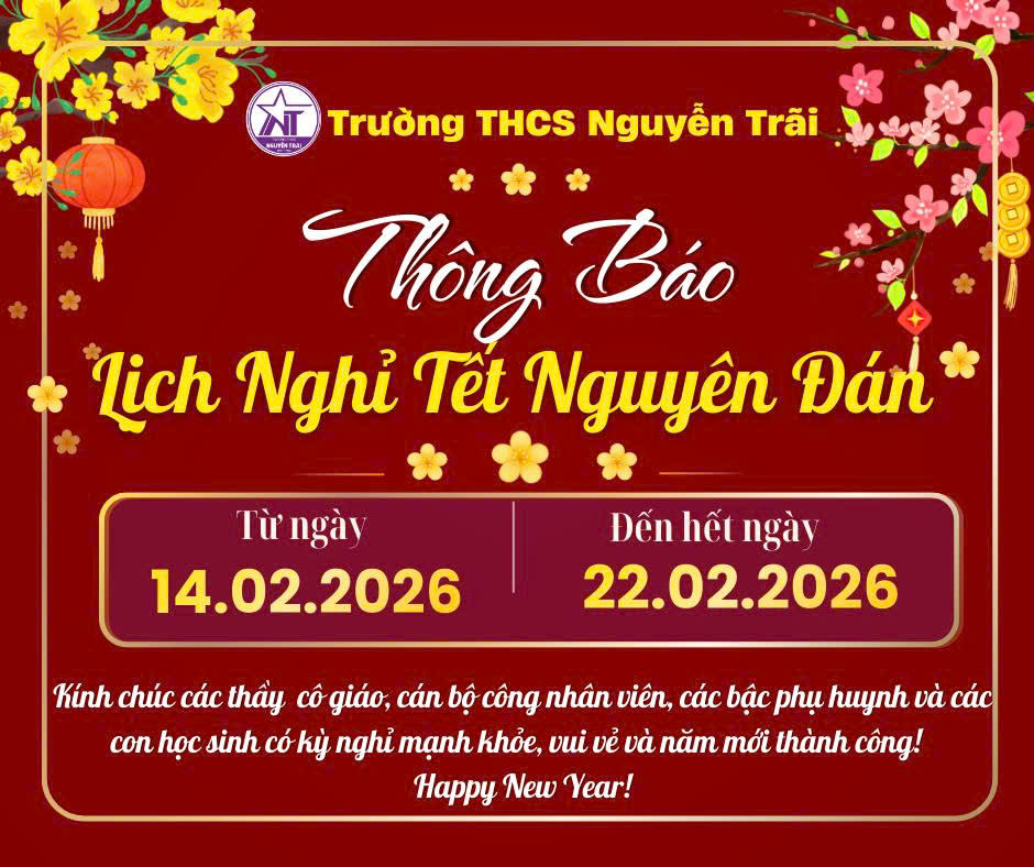 Trường THCS Nguyễn Trãi thông báo lịch nghỉ Tết nguyên đán 2026
