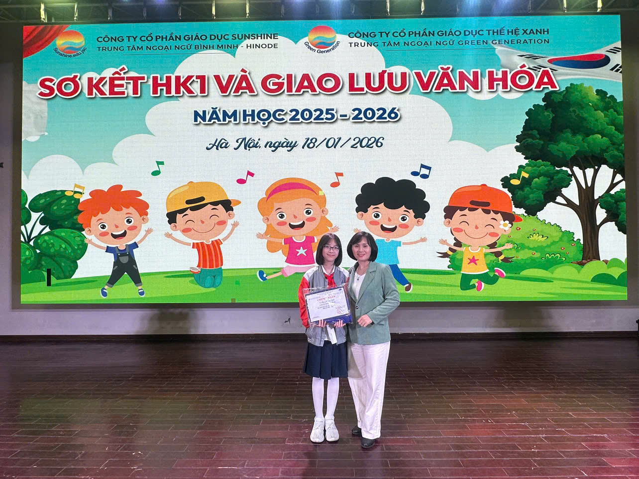 Ngày 18/01/2026, tại Hà Nội, Trung tâm Ngoại ngữ Bình Minh HINODE đã tổ chức Giao lưu văn hóa Việt – Nhật, đồng thời vinh danh các học sinh tiêu biểu học kì I năm học 2025-2026 đến từ nhiều trường học trên địa bàn thành phố Hà Nội. Chương trình được tổ chức trang trọng, ý nghĩa, nhằm ghi nhận và động viên những học sinh có thành tích nổi bật trong học tập và rèn luyện môn tiếng Nhật.
