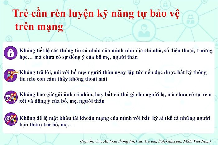 Tình trạng xâm hại và bóc lột trẻ em trên môi trường mạng đang gia tăng, xảy ra dưới mọi hình thức. Do đó, phụ huynh cần dạy trẻ em sử dụng mạng xã hội an toàn, giúp các em có kỹ năng tự bảo vệ trên mạng.