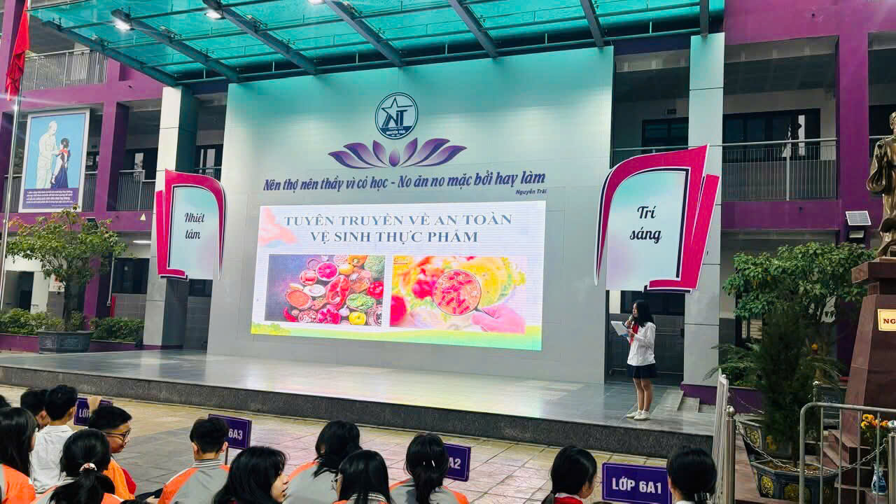 Sáng thứ Hai, ngày 19/01/2026, trong không khí nghiêm túc và nề nếp của buổi sinh hoạt dưới cờ đầu tuần, thầy và trò Trường THCS Nguyễn Trãi đã tổ chức chương trình với chuyên đề “Tuyên truyền về quản lý vũ khí, pháo nổ và Tuyên truyền an toàn vệ sinh thực phẩm.”