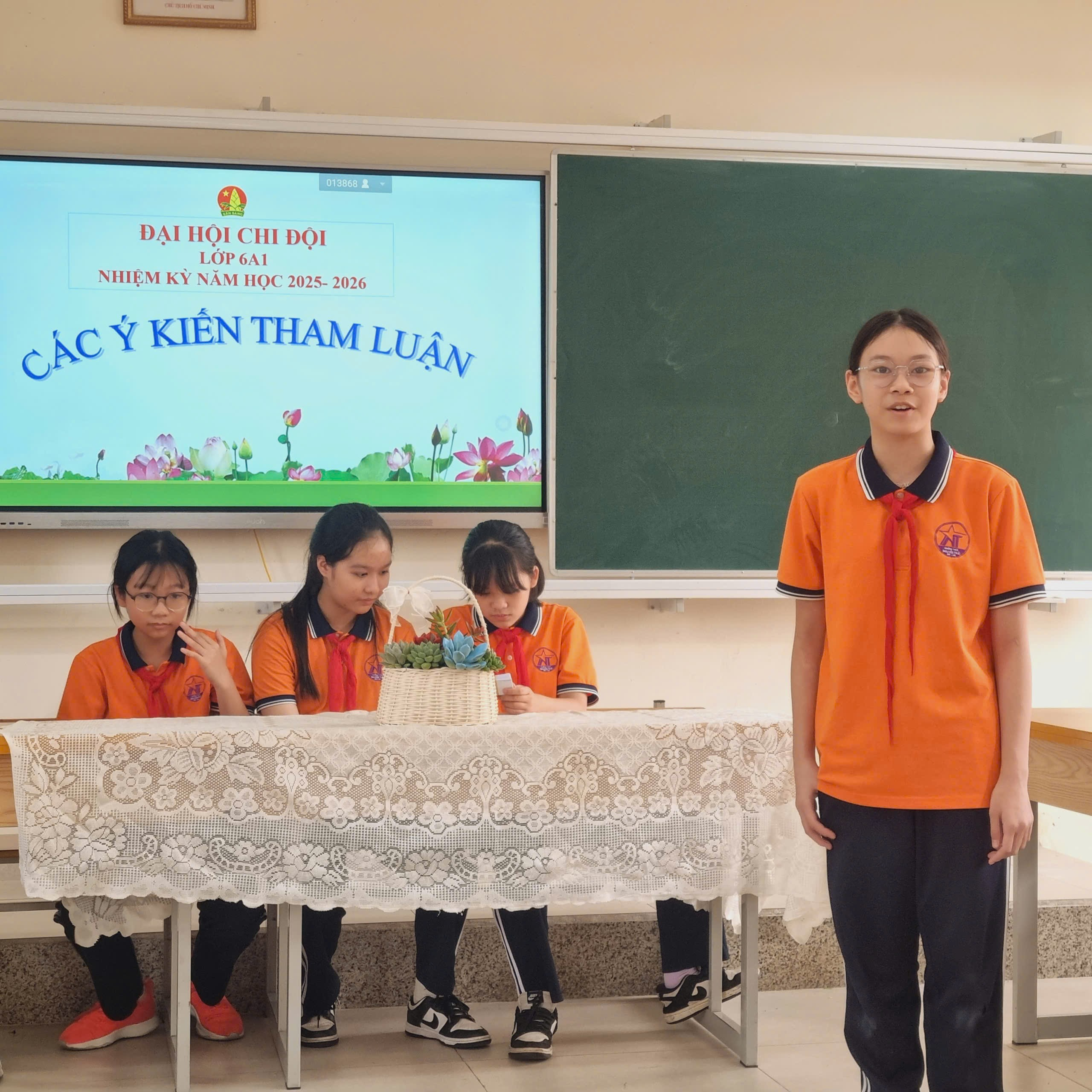 Hòa chung trong không khí thi đua sôi nổi của toàn Liên đội trường THCS Nguyễn Trãi, thực hiện kế hoạch công tác Đội năm học 2025–2026, chiều thứ Sáu, ngày 17/10/2025, Chi đội 6A1 đã long trọng tổ chức Đại hội Chi đội nhiệm kỳ mới trong tiết ba sinh hoạt lớp.