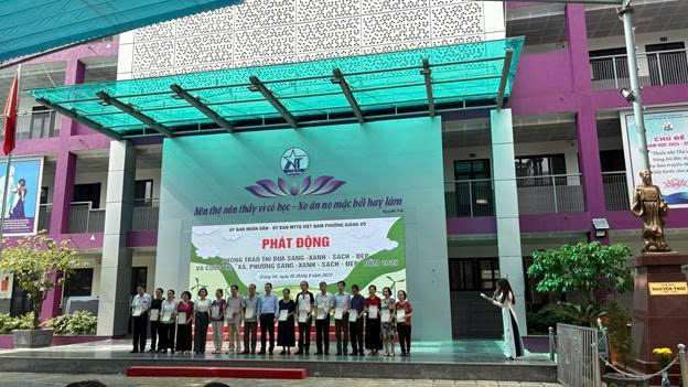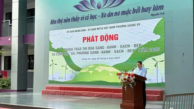 Sáng ngày 5/8/2025, tại trường THCS Nguyễn Trãi, Uỷ Ban Nhân Dân và Phòng Văn hóa - Xã hội phường Giảng Võ phối hợp với các đơn vị đã tổ chức Lễ phát động phong trào thi đua “Sáng - Xanh - Sạch - Đẹp” trên địa bàn phường.