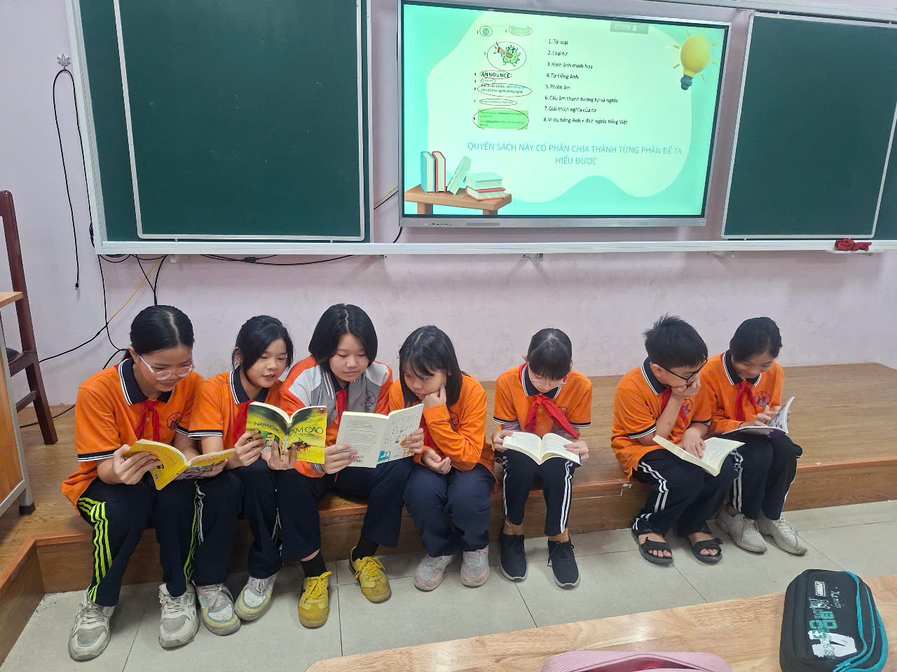 Để truyền thêm cảm hứng đọc và lan tỏa tình yêu sách, khơi dậy niềm đam mê đọc sách, Sáng thứ 2 ngày đầu tuần ngày 5.1.2026, lớp chúng em có tổ chức một buổi giới thiệu sách hay. Sau lễ chào cờ, bạn Văn Thảo và Hà Vy bước lên mục giảng và bắt đầu giới thiệu cuốn “Hack não 1500’’. Hai bạn ấy bắt đầu giới thiệu từng kiến thức trong mỗi trang , cuốn sách thu hút tới mức khiến các bạn trong lớp ai cũng chăm chú lắng nghe . Sau phần giới thiệu sách, chúng tôi được thỏa sức ngắm nhìn từng trang sách với đầy những kiến thức hay và bổ ích.