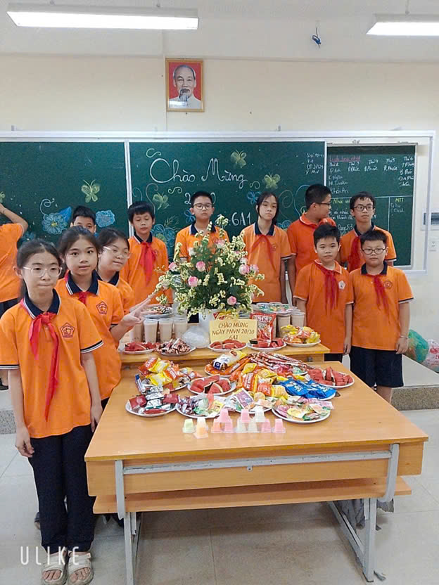 Ngày 20/10 là dịp đặc biệt để tôn vinh phụ nữ Việt Nam, và lớp 6A1 của chúng tôi đã có một buổi liên hoan thật vui vẻ, đáng nhớ. Từ sáng sớm, các bác phụ huynh đã chuẩn bị rất chu đáo, mang đến rất nhiều đồ ăn ngon và những phần trà sữa thơm mát. Không khí trong lớp rộn ràng, các bạn đều háo hức chờ đón buổi liên hoan sắp diễn ra.