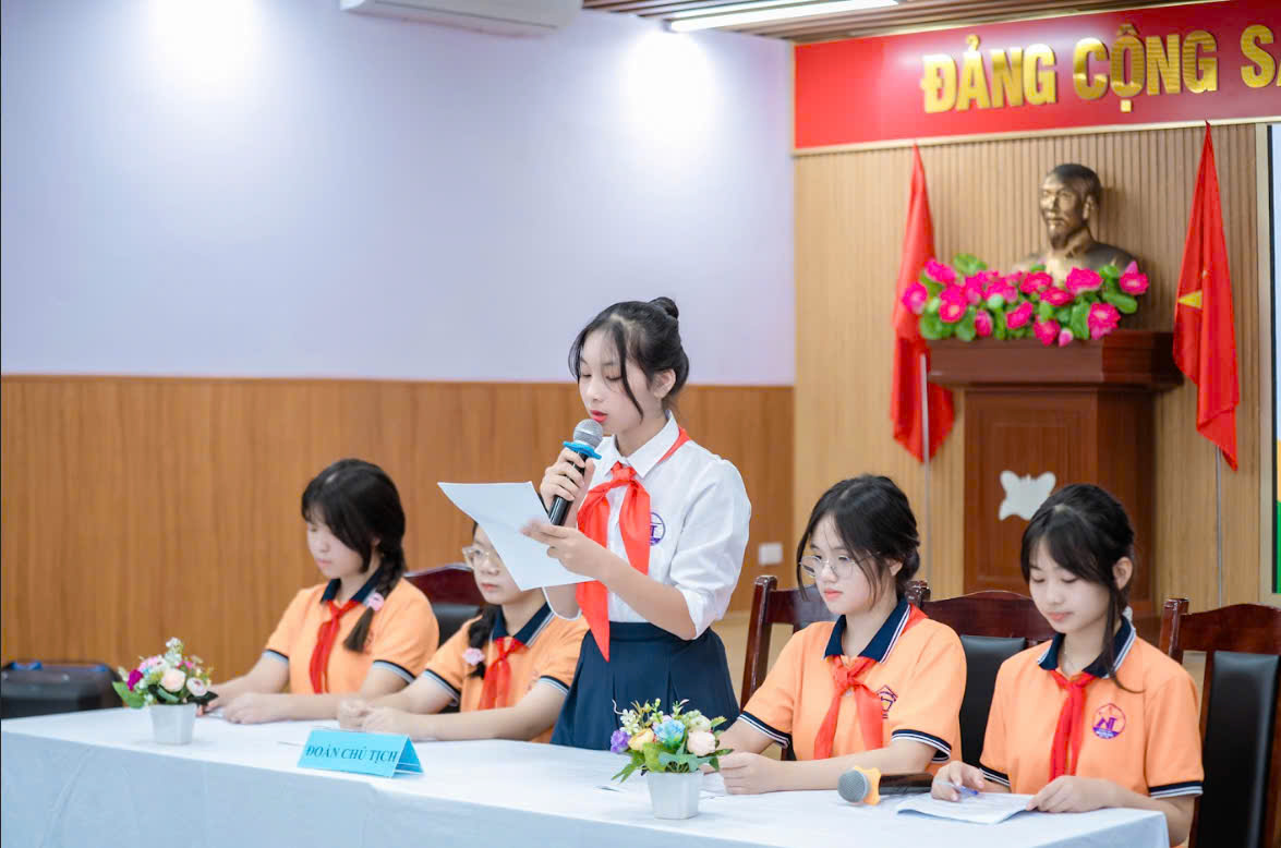 Tại Đại hội, các đại biểu đã nghe báo cáo tổng kết công tác Đội và phong trào thiếu nhi năm học 2024 – 2025, trong đó nêu bật nhiều thành tích đáng tự hào: các phong trào “Nghìn việc tốt”, “Kế hoạch nhỏ”, “Em yêu Hà Nội - Thành phố vì hoà bình”;... cùng nhiều học sinh đạt kết quả cao như bạn Nguyễn Đức Bình lớp 8A5, bạn Đầu Khương Duy lớp 9A1 và nhiều đội viên đã trở thành tấm gương sáng trong học tập và rèn luyện