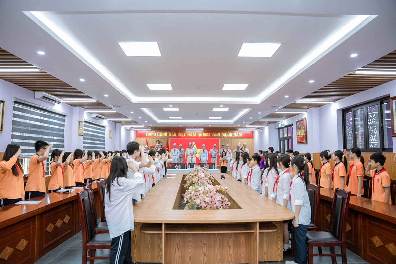 Khi Ban Chỉ huy Liên đội mới ra mắt và nhận nhiệm vụ, chị Đặng Thị Phương Linh – Phó Bí thư Đoàn phường Giảng Võ đã lên tặng hoa chúc mừng, gửi gắm niềm tin vào thế hệ đội viên năng động, sáng tạo của nhà trường.