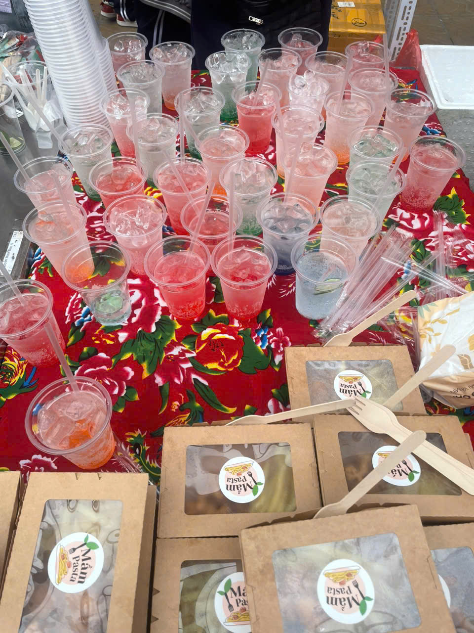 Điểm đặc biệt của gian hàng 6A1 chính là thực đơn phong phú, phù hợp với sở thích của nhiều bạn nhỏ. Những suất mì ý nóng hổi, khoai tây chiên giòn rụm, nem chua rán thơm lừng luôn trong tình trạng “cháy hàng”. Bên cạnh đó, những cốc chè dưỡng nhan mát lành, ly nước ngọt siro nhiều màu sắc không chỉ ngon miệng mà còn mang đến cảm giác tươi mới, đúng chất ngày xuân. Mỗi món ăn đều được các bạn chuẩn bị cẩn thận, bày biện gọn gàng, thể hiện sự khéo léo và tinh thần trách nhiệm của cả lớp.
