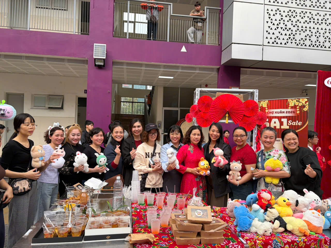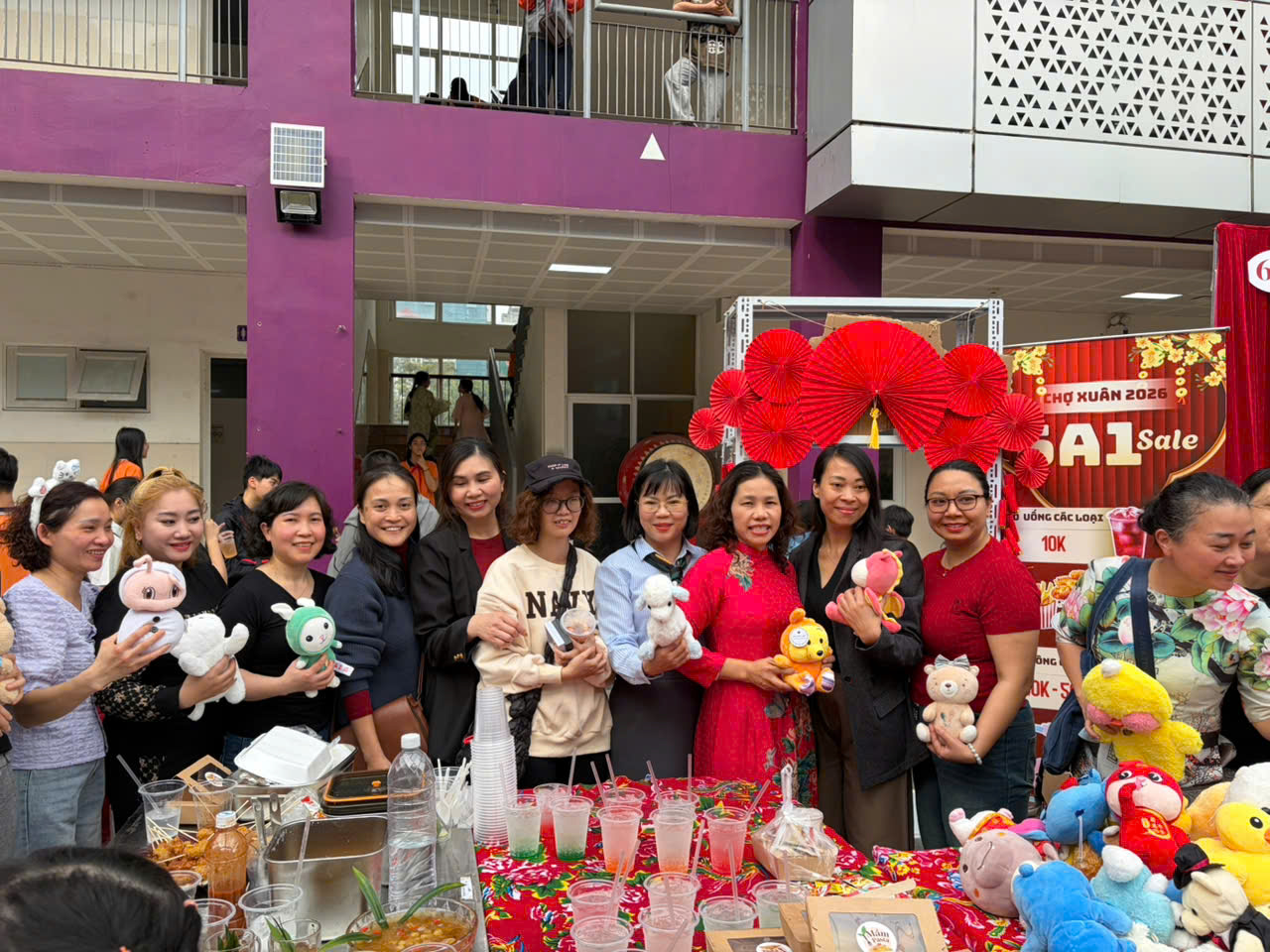 Không chỉ hấp dẫn bởi ẩm thực, gian hàng 6A1 còn khiến nhiều bạn học sinh thích thú với khu vực bán đồ chơi và đồ lưu niệm. Những chú gấu bông mềm mại, kẹp tóc xinh xắn, con quay nhiều màu sắc hay các món đồ nhỏ dễ thương đã trở thành lựa chọn yêu thích của rất nhiều bạn nhỏ. Mỗi món đồ không chỉ mang giá trị vật chất mà còn là kỷ niệm đáng nhớ của Hội chợ Xuân 2026.
