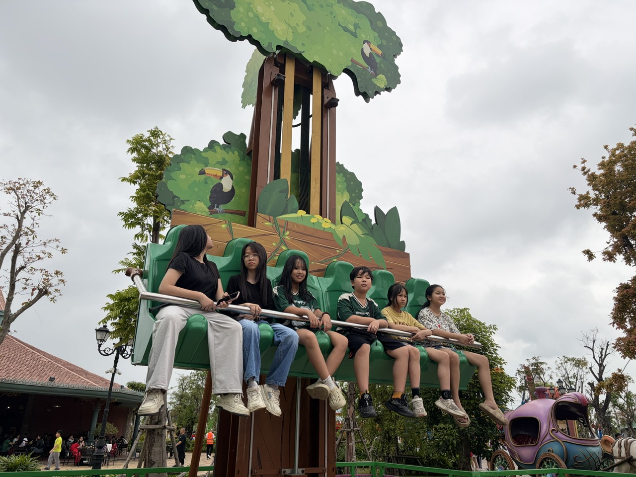 Tiếp nối hành trình, các em được tự do khám phá các khu vui chơi hấp dẫn. Từ những trò chơi nhẹ nhàng đến các trò cảm giác mạnh, mỗi trải nghiệm đều mang lại những cung bậc cảm xúc khác nhau. Có bạn hồi hộp, lo lắng nhưng rồi vỡ òa trong tiếng cười khi vượt qua thử thách; có nhóm bạn cùng nhau reo hò, cổ vũ, tạo nên bầu không khí sôi động và gắn kết.