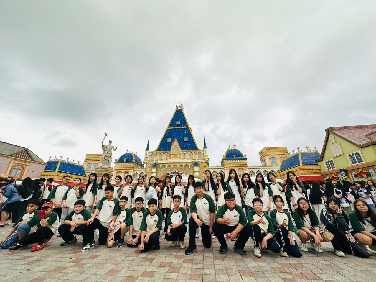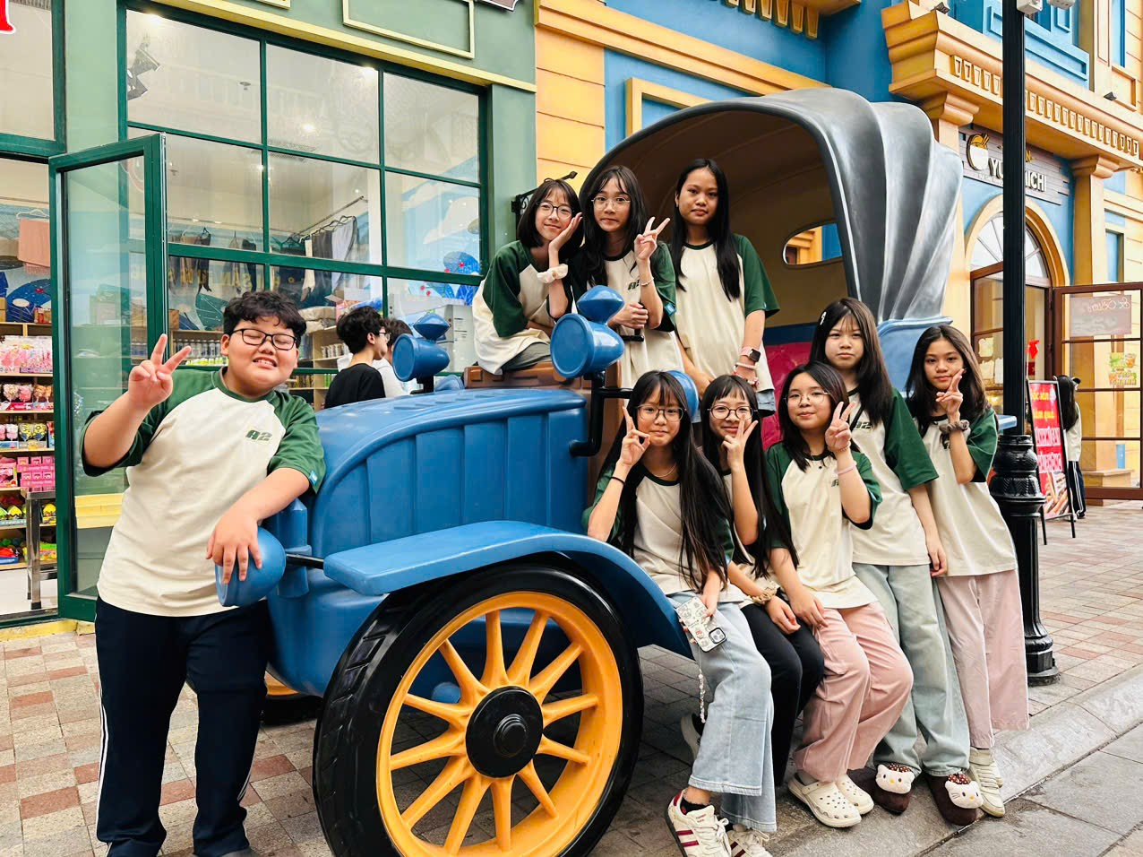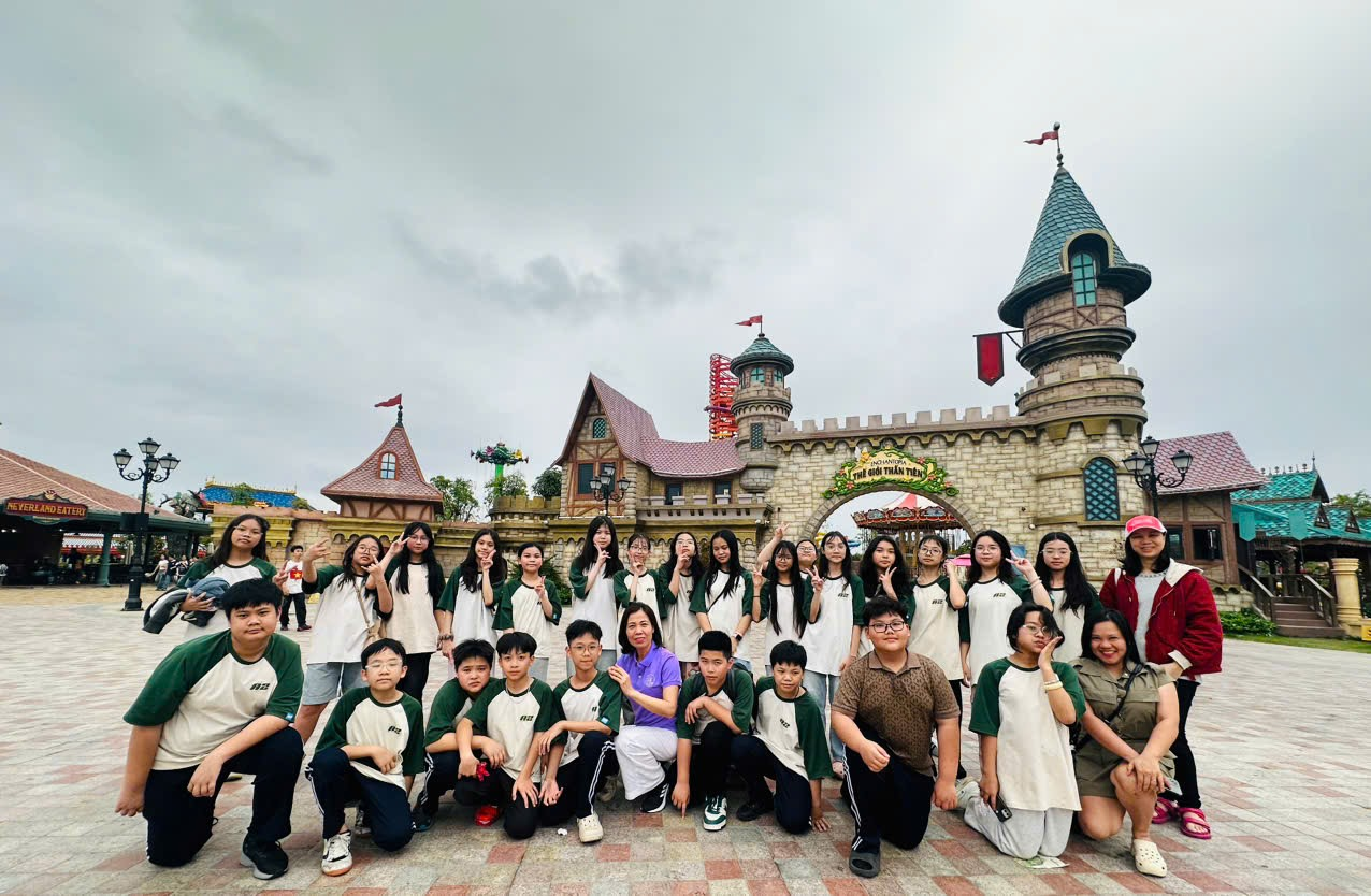 Bước qua cánh cổng lâu đài, các em như lạc vào một thế giới cổ tích đích thực với những kiến trúc đồ sộ và không gian mang đậm màu sắc thần thoại. Dưới sự hướng dẫn tận tình của cô giáo và các bác phụ huynh, dàn "soái ca, mỹ nữ" lớp 6A2 đã nhanh chóng bắt đầu hành trình khám phá những góc check-in "triệu view". Thật thú vị khi ngắm nhìn các bạn nhỏ đầy phong cách và tinh nghịch khi tạo dáng bên chiếc xe xanh cổ điển hay những tòa tháp cao vút. Mỗi bức ảnh không chỉ ghi lại vẻ đẹp của cảnh vật mà còn lưu giữ sự hồn nhiên, trong sáng của tuổi học trò. Chính sự kết hợp giữa nét hiện đại của công viên chủ đề và tinh thần năng động của các em đã tạo nên một sức sống mới cho chuyến đi lần này.