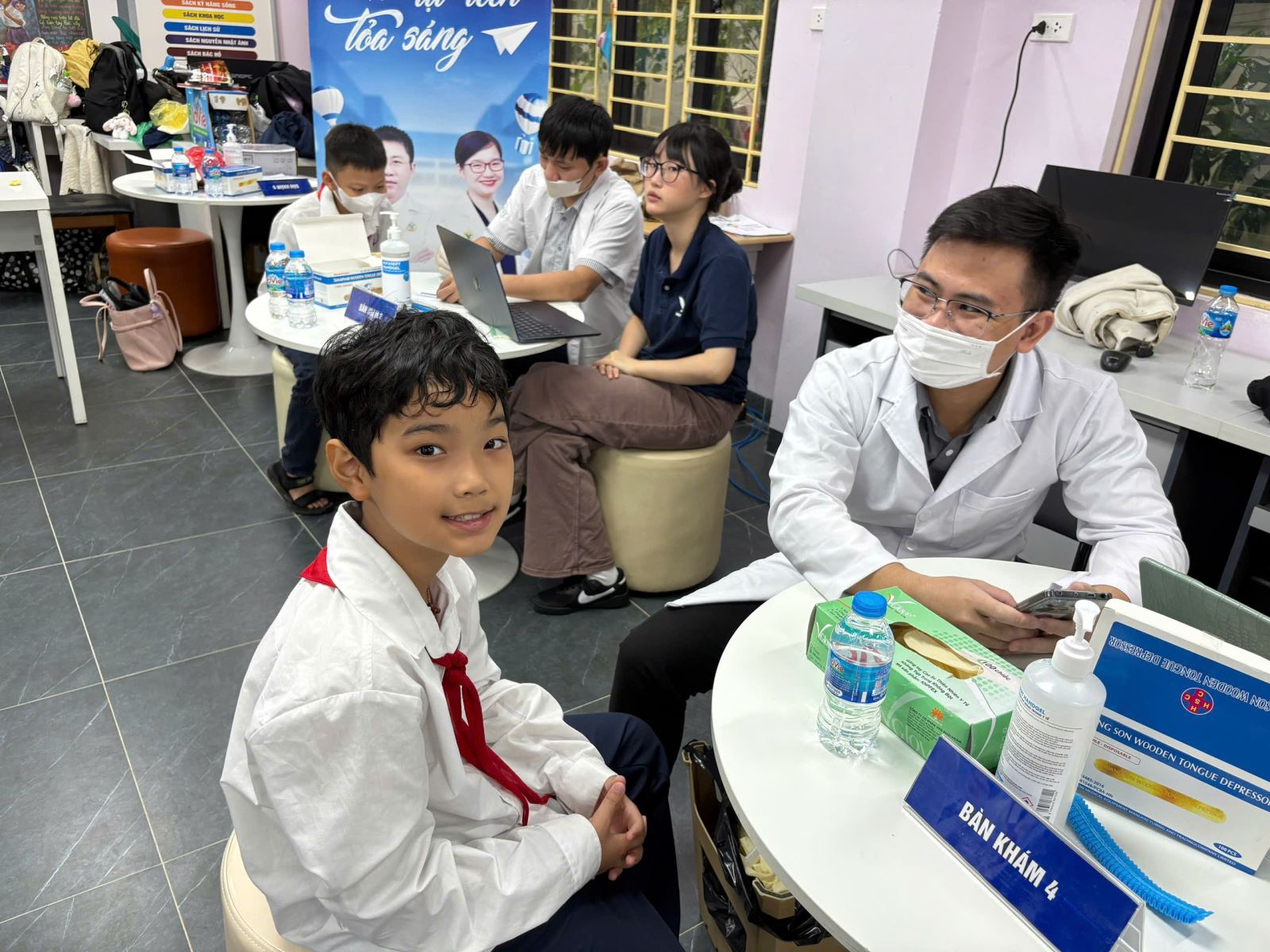 Sau phần trao giải, học sinh lớp 6A4 cùng các bạn toàn trường được tham gia khám răng miệng miễn phí với đội ngũ bác sĩ của MedDental. Các bác sĩ ân cần hướng dẫn từng bạn cách chải răng đúng cách, kiểm tra răng miệng và tặng quà nhỏ khích lệ. Hoạt động diễn ra vui vẻ, nhẹ nhàng mà rất bổ ích.
