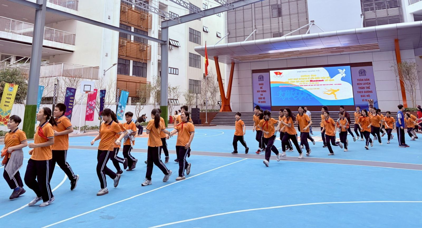 Ngay từ sớm, khuôn viên nhà trường đã trở nên sôi động với sự góp mặt của đông đảo cán bộ, giáo viên, học sinh và nhân dân. Đặc biệt, 80 thầy cô và học sinh Trường THCS Nguyễn Trãi đã hào hứng tham gia, mang đến tinh thần trẻ trung, nhiệt huyết cho ngày hội thể thao ý nghĩa này. Những bước chạy khoẻ khoắn, những nụ cười rạng rỡ đã góp phần lan tỏa thông điệp tích cực về rèn luyện sức khỏe và lối sống năng động.