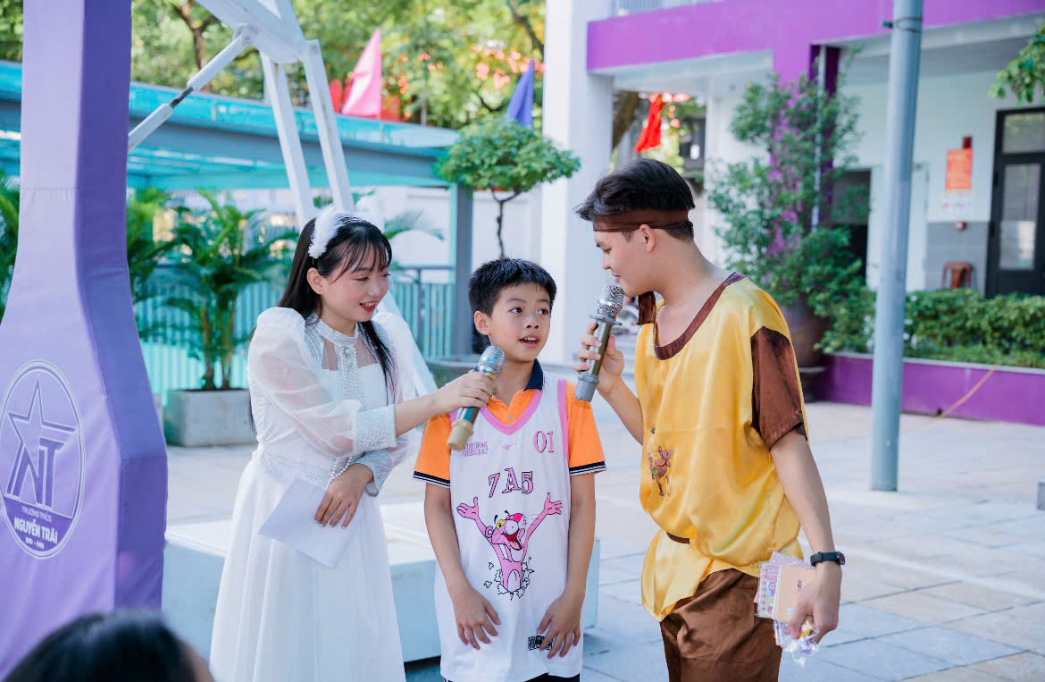 Buổi chiều, buổi lễ bắt đầu bằng những tiết mục văn nghệ đặc sắc do chính học sinh của trường biểu diễn: có bài hát “Rước đèn tháng Tám” rộn ràng; có màn múa lân sôi động khiến cả trường như bừng sáng; có chú Cuội và chị Hằng giao lưu với toàn thể học sinh. Sau đó, cô Hiệu trưởng cùng các bạn đại diện nhà trường đã gửi lời chúc Trung thu đến toàn thể học sinh, mong rằng chúng em luôn chăm ngoan, học giỏi và giữ mãi tinh thần đoàn kết.
