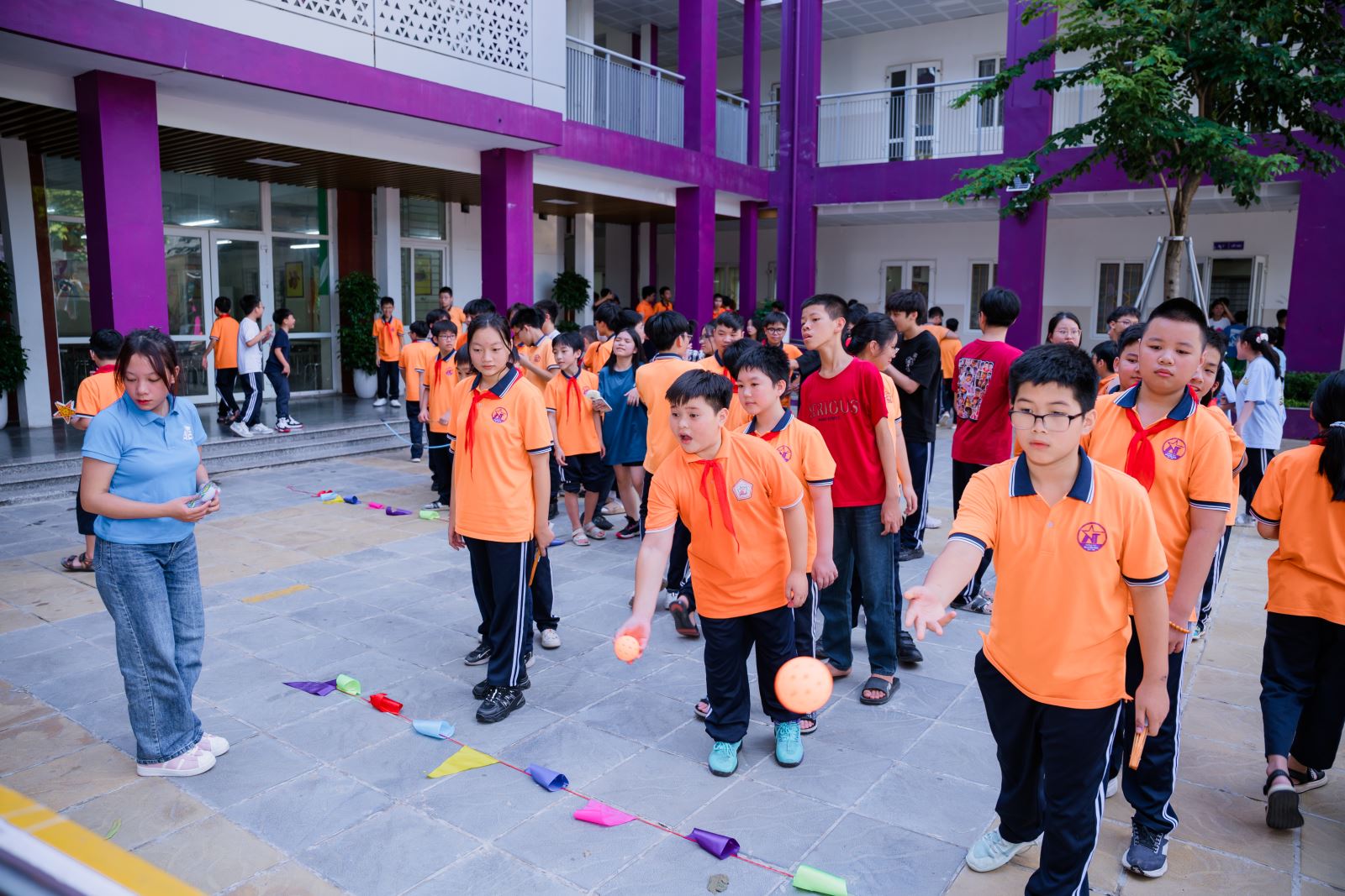 Ảnh: Học sinh tham gia trò chơi ném bóng