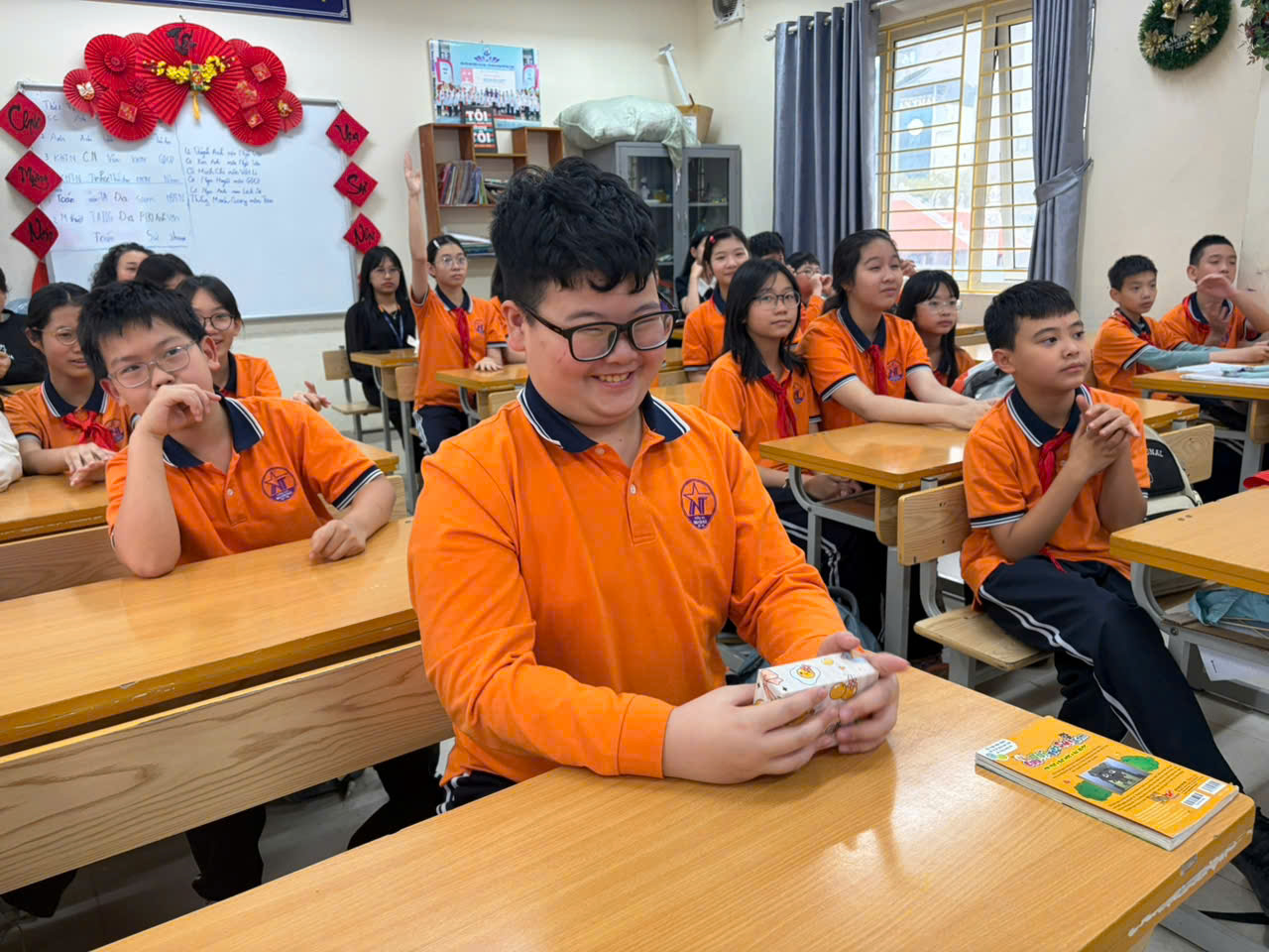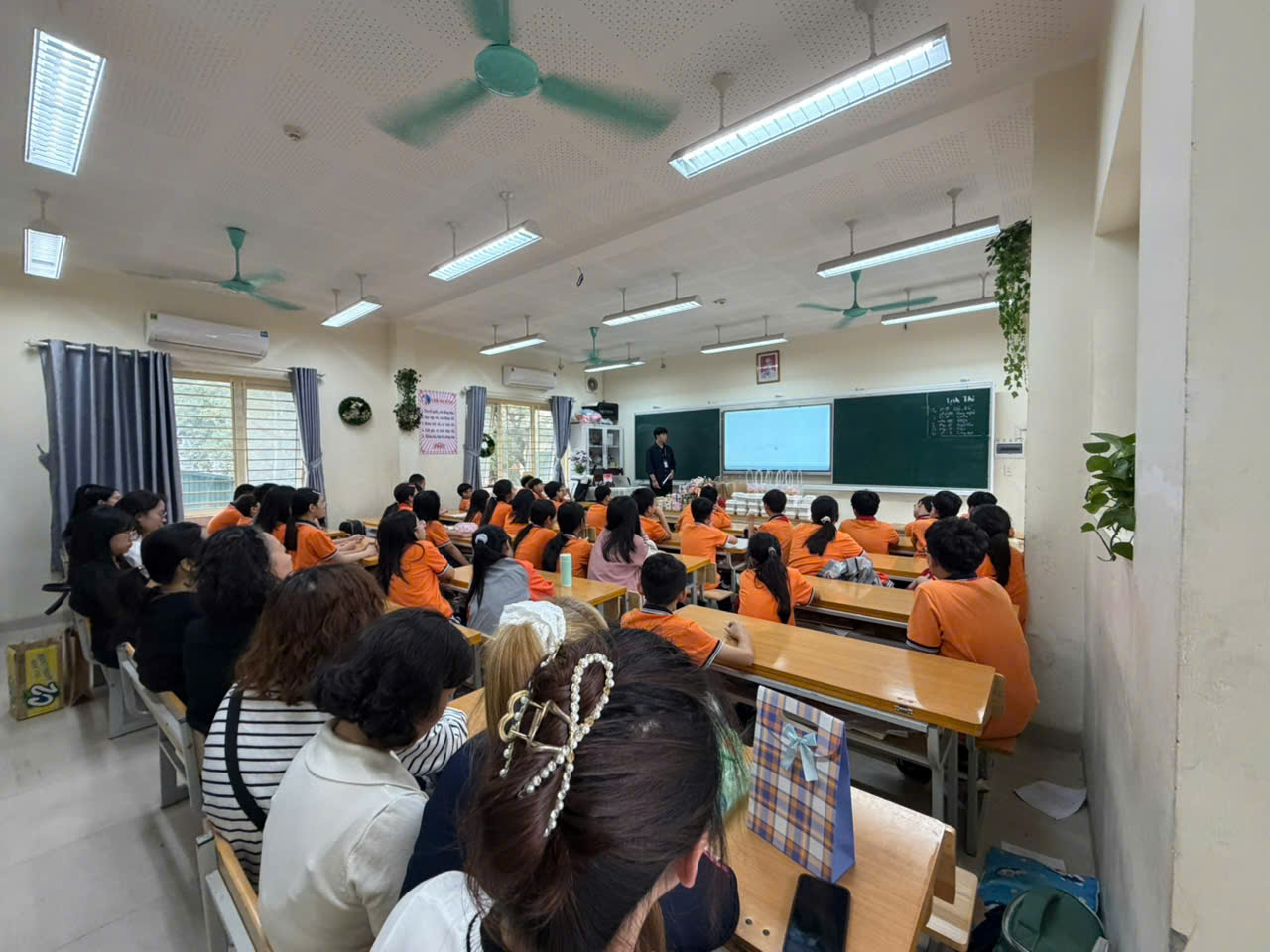 Sau khi xem video, cô chủ nhiệm Bình An đã nhẹ nhàng chia sẻ và gợi ý cho chúng tôi những cách thể hiện lòng biết ơn thật giản dị mà ý nghĩa. Cô nói rằng không cần những món quà đắt tiền, chỉ cần một lời chúc chân thành, một cái ôm ấm áp, một bức thư viết tay hay đơn giản là giúp mẹ rửa bát, quét nhà cũng đủ làm bà và mẹ vui lòng. Lời cô nói khiến chúng tôi hiểu rằng yêu thương cần được thể hiện bằng hành động cụ thể mỗi ngày, chứ không chỉ trong những dịp đặc biệt. Nhiều bạn đã hào hứng chia sẻ kế hoạch nhỏ của mình như tự tay làm thiệp tặng mẹ, chuẩn bị một bữa sáng cho bà hay đạt điểm tốt để làm quà. Không khí lớp học trở nên ấm áp và đầy cảm xúc.