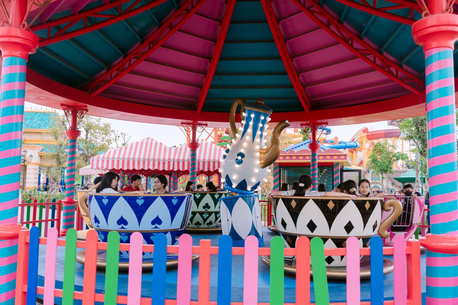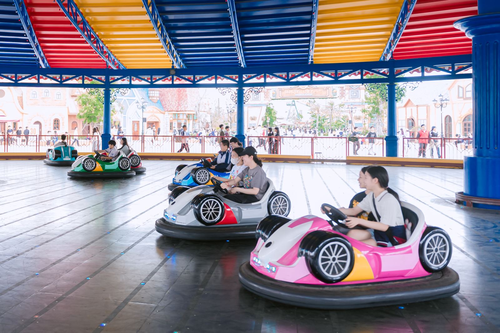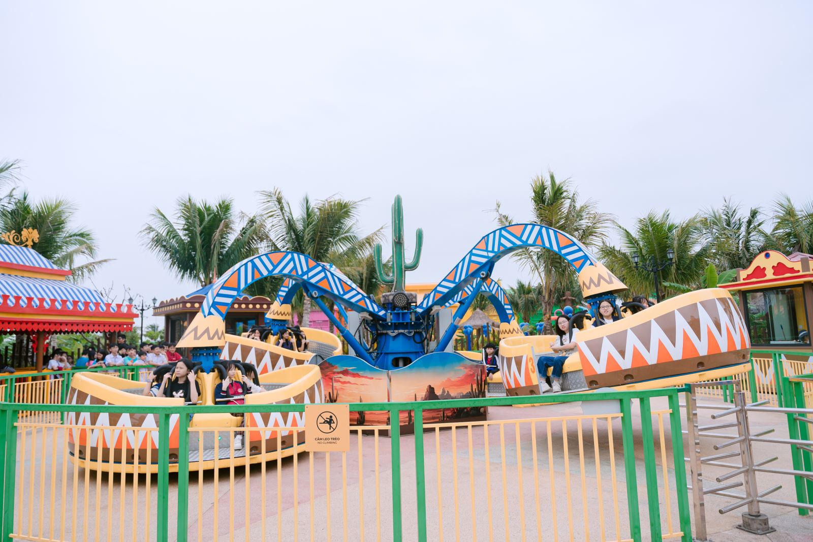Không kém phần hấp dẫn là khu trò chơi cảm giác mạnh. Tàu lượn siêu tốc, zipline hay đĩa bay đã thử thách lòng can đảm của các bạn. Dù phải kiên nhẫn xếp hàng, ai cũng háo hức chờ đợi để rồi vỡ òa trong những giây phút “nghẹt thở” đầy phấn khích. Có bạn còn e dè trước thử thách, nhưng vẫn nhiệt tình cổ vũ bạn bè. Bạn Quang Khải (lớp 7A4) chia sẻ đầy tiếc nuối khi chưa đủ dũng cảm để thử tàu lượn, nhưng cũng quyết tâm sẽ chinh phục trong lần sau. Trong khi đó, bạn An Nhiên (lớp 8A2) lại ghi dấu chuyến đi bằng những bức ảnh đầy màu sắc, lưu giữ trọn vẹn khoảnh khắc đáng nhớ của bạn bè.
