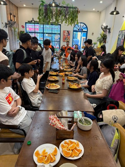 Không chỉ dừng lại ở việc vui chơi, chúng em còn tranh thủ ghi lại những bức ảnh kỷ niệm. Dưới ánh nắng rực rỡ, từng nụ cười, từng ánh mắt đều trở nên thật tươi tắn. Những tấm ảnh ấy sẽ là minh chứng cho một ngày tràn đầy niềm vui và ý nghĩa. Đến trưa, cả lớp quây quần bên nhau, cùng ăn uống và nghỉ ngơi. Những câu chuyện rôm rả về các trò chơi vừa trải qua khiến không khí thêm ấm áp. Buổi chiều, chúng em tiếp tục thăm quan và chơi các trò chơi với nhau cho đến 16h30.