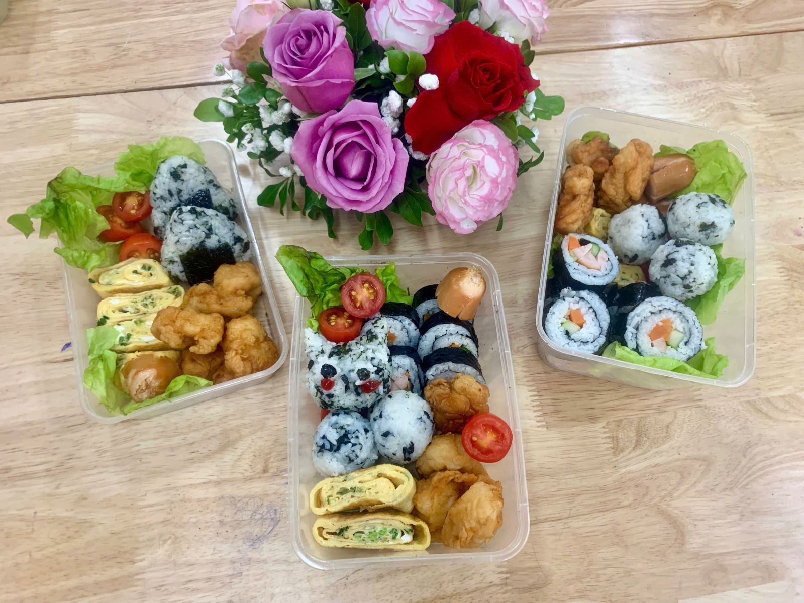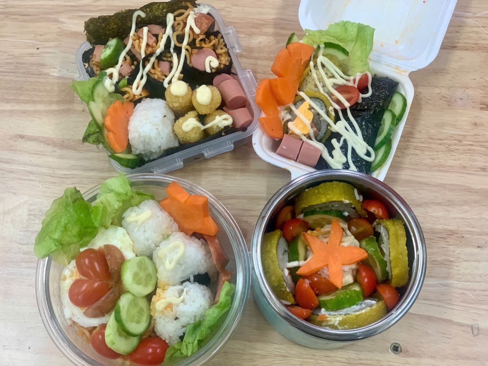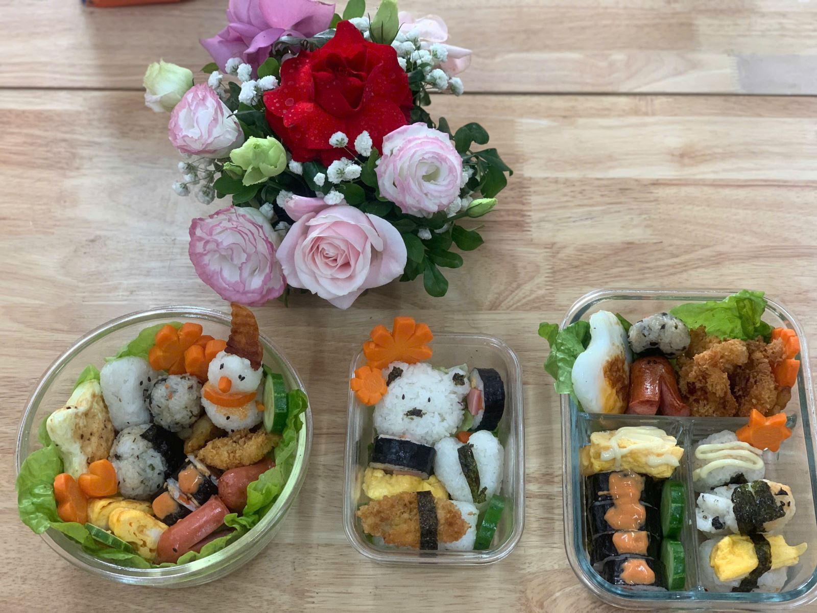 Những hộp cơm Bento đơn giản chỉ gồm cơm, cá hoặc thịt cùng một vài loại rau ăn kèm được trang trí khéo léo, đẹp mắt. Đẹp thôi chưa đủ, Bento còn mang lại đầy đủ chất dinh dưỡng cần thiết. Và đây là những hình ảnh các con trải nghiệm làm Bento: