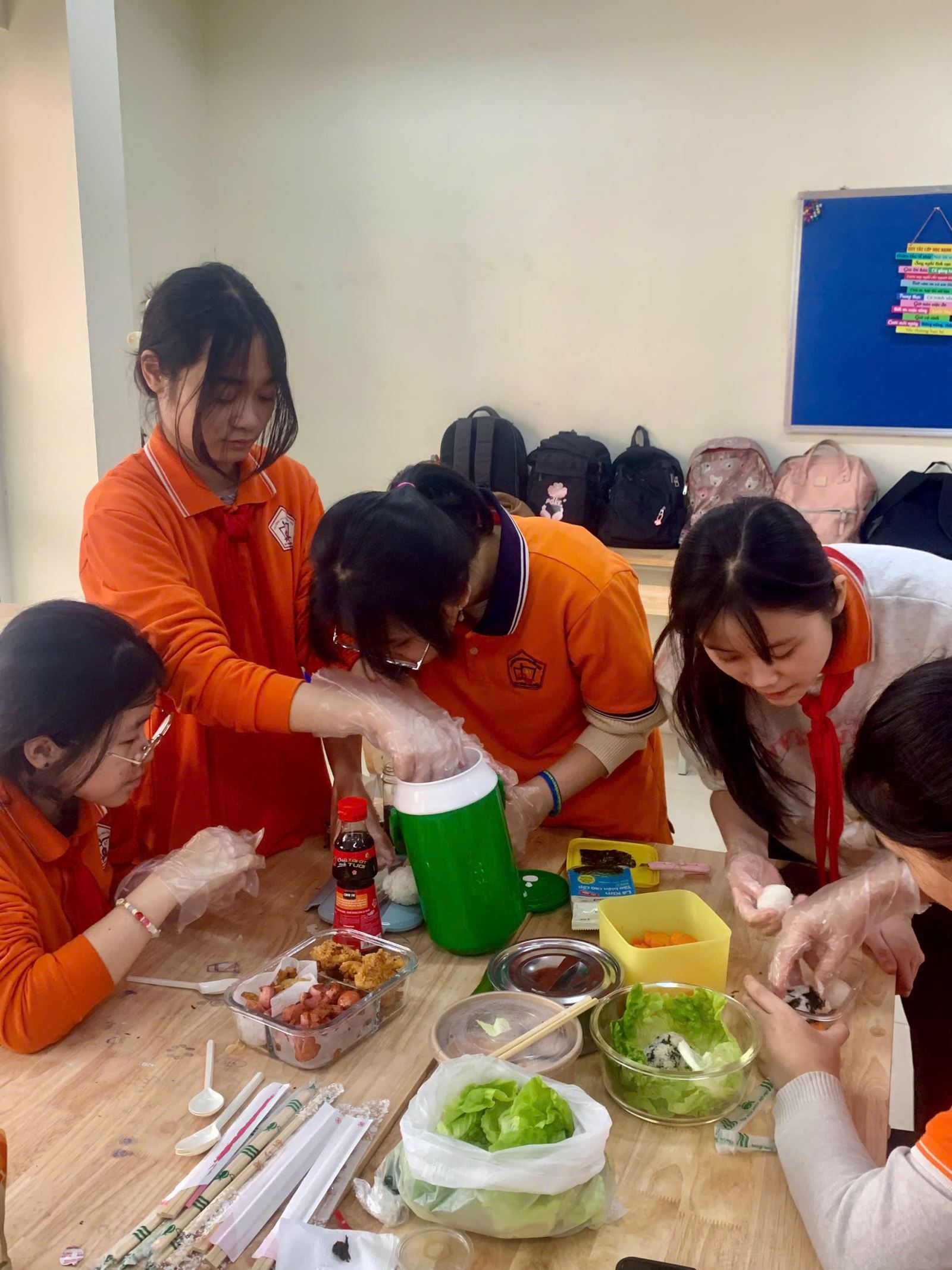 Chiều nay, dưới sự hướng dẫn của cô giáo tiếng Nhật, học sinh lớp 9A2 đã được trải nghiệm văn hóa làm cơm Bento Nhật Bản. Học sinh rất hứng thú bởi các con được tự tay cắt thái các nguyên liệu và trang trí cho hộp cơm của nhóm mình.