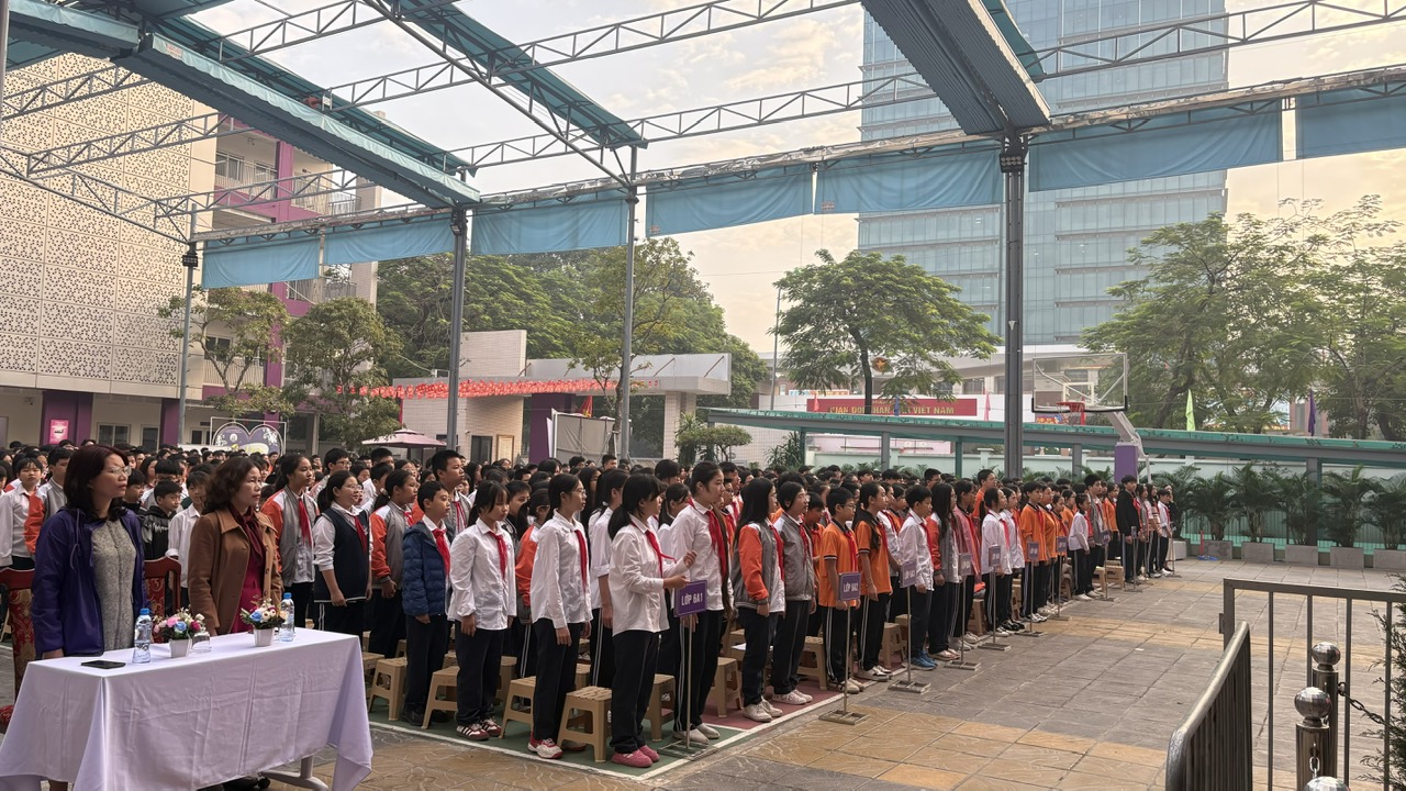 Trong không khí trang nghiêm của tiết chào cờ đầu tuần, đúng vào ngày 22/12, học sinh lớp 6A2 cùng toàn thể học sinh trường THCS Nguyễn Trãi đã tập trung đông đủ dưới sân trường để tham dự hoạt động tuyên truyền, kỷ niệm Ngày thành lập Quân đội nhân dân Việt Nam. Qua những hình ảnh tư liệu lịch sử được trình chiếu, học sinh được ôn lại chặng đường vẻ vang của quân đội ta, hiểu rõ hơn về sự hy sinh, cống hiến thầm lặng của các thế hệ cha anh vì nền độc lập, tự do của dân tộc.
