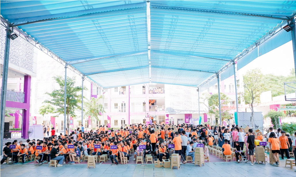 Ngay từ buổi chiều, sân trường đã náo nhiệt hơn thường lệ. Các lớp tập trung đông đủ, tiếng nói cười ríu rít vang khắp góc sân. Những chiếc đèn ông sao, đèn cá chép, đèn lồng giấy được chuẩn bị từ trước đã khiến không gian thêm lung linh, rực rỡ. Ai cũng háo hức chờ đón một đêm hội tuổi thơ thật đặc biệt.