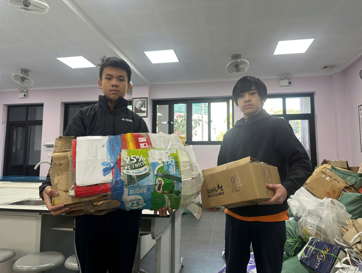 +Thu gom giấy vụn, chai nhựa, lon nước đã qua sử dụng.