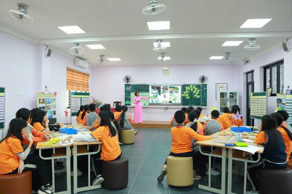 Cô Nguyễn Thị Hồng đã rất khéo léo trong việc hướng dẫn học sinh chủ động giải quyết vấn đề. Trong suốt tiết học, cô đã khuyến khích các em đặt câu hỏi, tranh luận, và đặc biệt là cùng nhau tìm kiếm các giải pháp thiết thực. Cô cũng chia sẻ với các em những câu chuyện thực tế về những nỗ lực của các tổ chức quốc tế và trong nước trong việc đối phó với biến đổi khí hậu, khiến các em cảm thấy gần gũi và có trách nhiệm hơn với hành động bảo vệ môi trường.