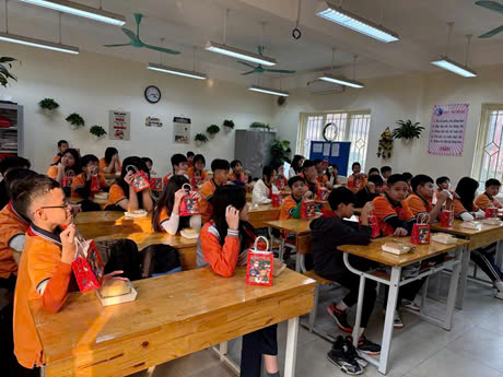 Bất ngờ hơn cả khi Cô chủ nhiệm và Ban phụ huynh lớp đã xuất hiện và tặng cho chúng em những phần quà vô cùng xinh đẹp và ý nghĩa. Chiếc bánh humberger làm dịu cơn đói của lũ học sinh tinh nghịch chúng em. Ai ai cũng thích thú nói nói cười cười trong ánh nhìn trìu mến thân thương của cô Hiền chủ nhiệm và các bác ban phụ huynh như thể nhìn đàn con của mình dù đã lớp 7 mà vẫn ngây ngô, đáng yêu đến thế.
