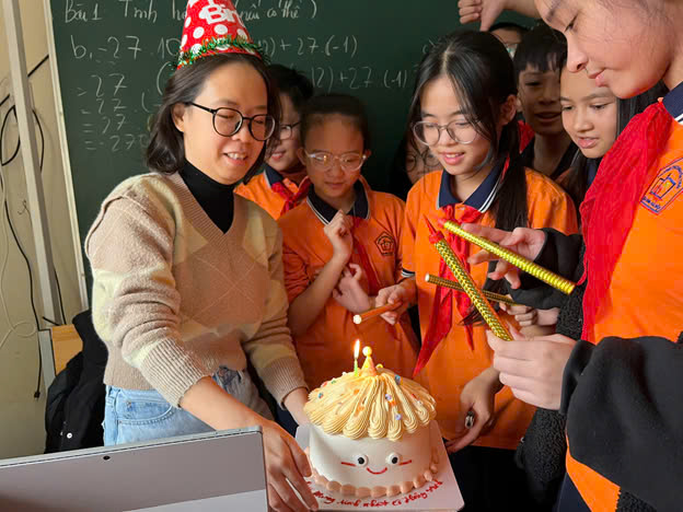 Khi mọi thứ đã sẵn sàng, cô bước vào lớp thì tiếng hát “Chúc mừng sinh nhật” đồng thanh vang lên. Không khí lớp học như bừng sáng với tiếng cười nói rộn ràng. Cô Hồng Anh bất ngờ, xúc động đến mức chỉ biết mỉm cười rạng rỡ, ánh mắt tràn ngập yêu thương.