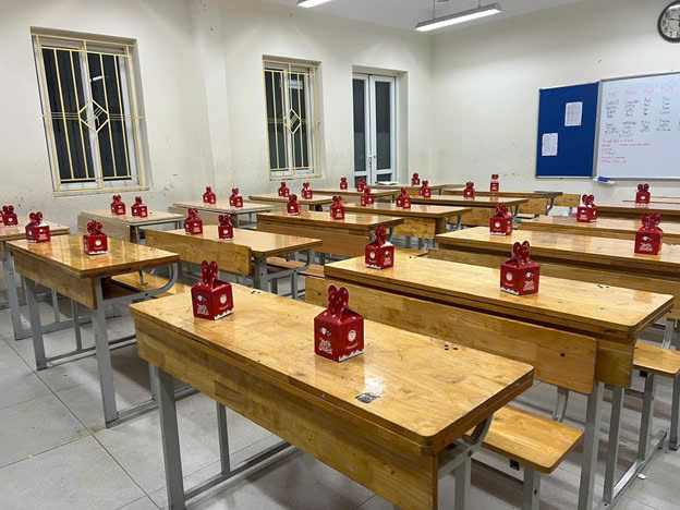 Sáng hôm ấy, trời trong và se lạnh, em bước chân vào lớp với tâm trạng không có gì đặc biệt. Nhưng bất ngờ thay, cảnh tượng trước mắt đã khiến em không khỏi ngỡ ngàng và vui sướng. Lớp học hôm nay dường như được khoác lên một chiếc áo mới. Những dây đèn nhấp nháy đã được treo khắp phòng, một dòng chữ "Merry Christmas" rực rỡ được dán trên bảng đen. Nhưng điều bất ngờ nhất chính là mỗi bàn học của chúng em đều có một chiếc hộp màu đỏ nhỏ xinh đang chờ đợi.