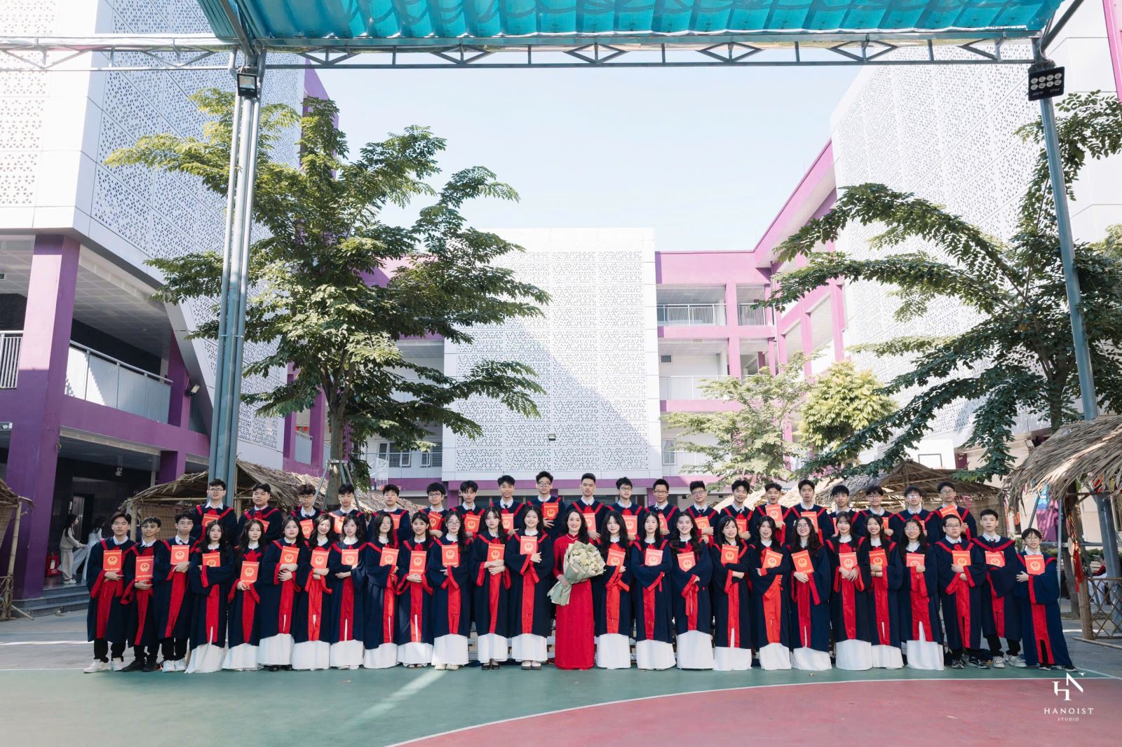 Buổi chụp bắt đầu với những bức ảnh cá nhân, ai cũng nở cho mình nụ cười tươi để đem lại tấm hình ưng ý nhất. Sau đó tới concept chụp tập thể với áo cử nhân, cầm trong tay tấm bằng tốt nghiệp ai cũng đều bồi hồi nhớ lại kỷ niệm chập chững bước vào lớp 6. Mỗi anh thợ chụp đều mang tinh thần thoải mái giúp chúng em tận hưởng và bắt trọn từng góc máy, nét mặt đẹp nhất.