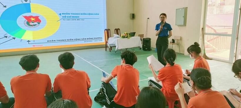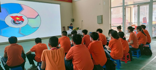 Cô Đỗ Vi – Phó Bí thư Chi đoàn trường THCS Nguyễn Trãi giảng trong lớp Cảm tình Đoàn