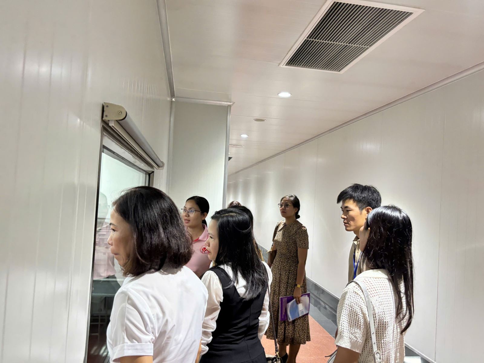 Đoàn công tác do cô Lê Thị Minh Huệ - Hiệu trưởng nhà trường làm trưởng đoàn, thư ký là cô Phạm Thị Ngọc Xuyến; các thành viên gồm cô Nguyễn Thị Hồng Hạnh (khối trưởng GVCN khối 6), cô Nguyễn Hồng Chuyên (đại diện Ban phụ huynh khối 7), cô Phạm Thị Thủy (đại diện Ban phụ huynh khối 6). Đoàn đã đến làm việc, kiểm tra hồ sơ và kiểm tra thực tế các khâu sản xuất thực phẩm tại Công ty TNHH Green Chicken (địa chỉ: KCN Hà Bình Phương, Thường Tín - Hà Nội), một trong những nhà cung cấp chính thịt gà cho bếp ăn của trường.