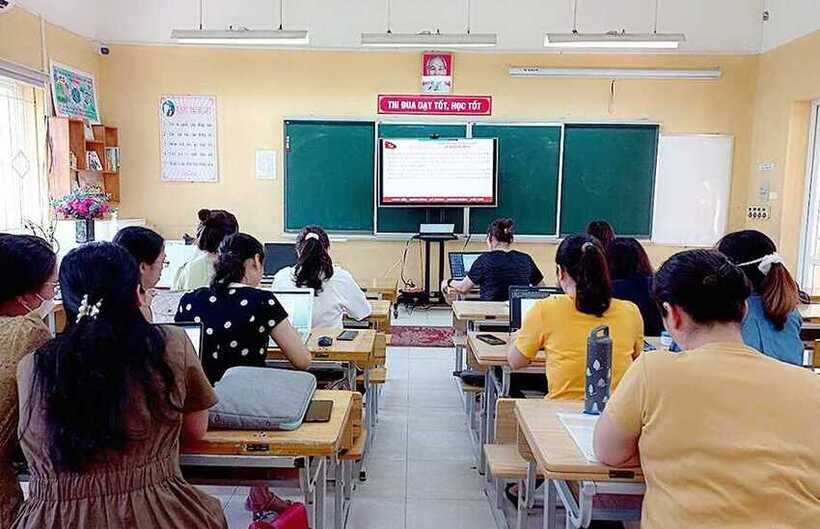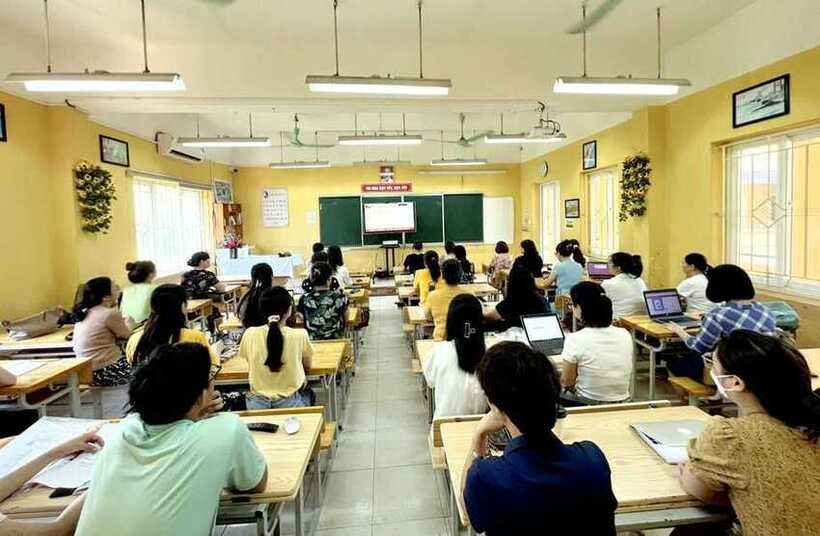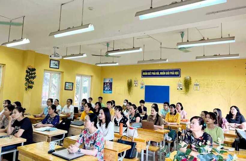 100% cán bộ, giáo viên, nhân viên trường THCS Nguyễn Trãi tham dự lớp tập huấn đầy đủ.