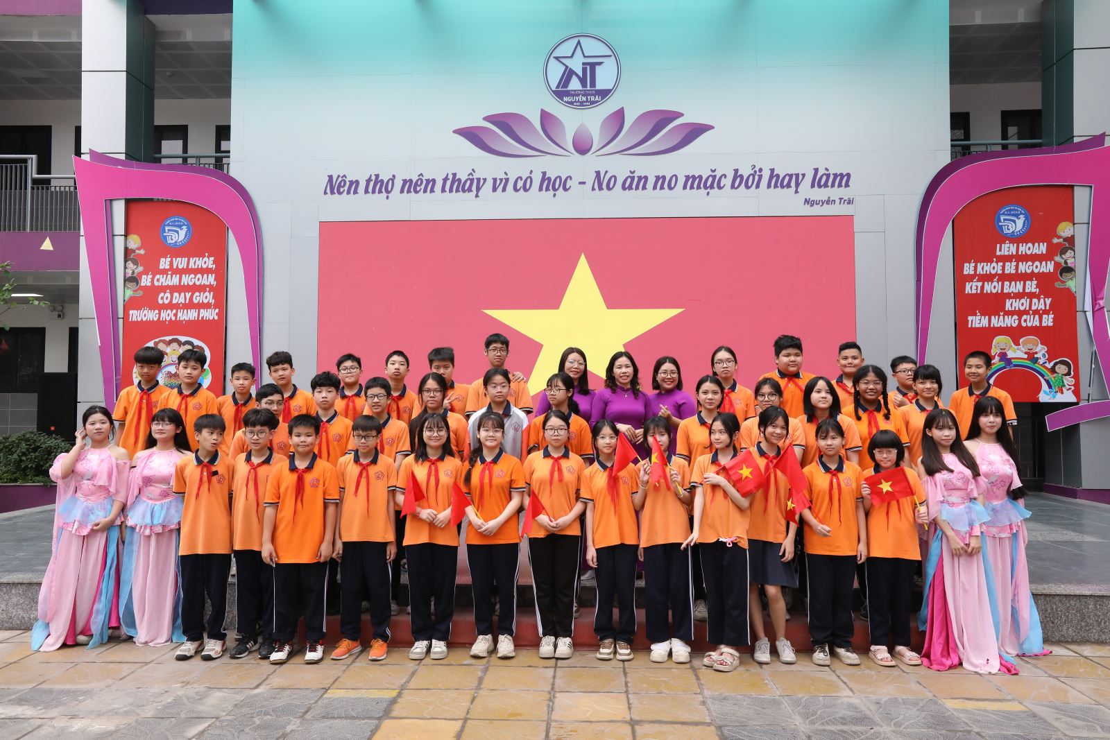 Hòa trong không khí thiêng liêng của cả nước kỷ niệm 50 năm ngày Giải phóng (30/4/1975 – 30/4/2025), cô và trò lớp 7A4 trường THCS Nguyễn Trãi đã cùng nhau tổ chức hoạt động ý nghĩa: chụp ảnh lưu niệm bên lá cờ Tổ quốc. Trong sắc đỏ rực rỡ của quốc kỳ, thầy trò lớp 7A4 đã cùng nhau bày tỏ lòng tự hào dân tộc, lòng biết ơn sâu sắc đối với thế hệ cha anh đã hy sinh vì nền độc lập, tự do của Tổ quốc.