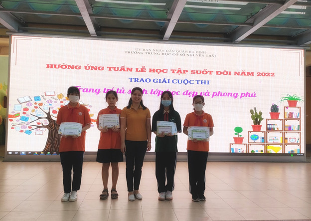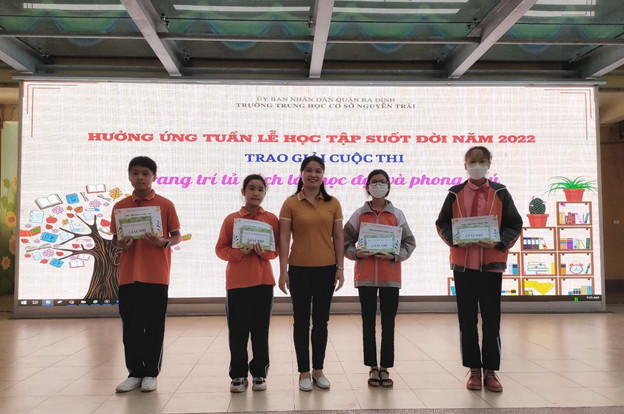Để hưởng ứng Tuần lễ học tập suốt đời năm 2022 Thư viện trường THCS Nguyễn Trãi đã phát động cuộc thi “Trang trí tủ sách lớp học đẹp và phong phú” dành cho HS các khối lớp. Cuộc thi nhằm khuyến khích đưa phong trào đọc sách trở thành thói quen, nét đẹp văn hóa trong học sinh; giúp học sinh có cơ hội được đọc những cuốn sách hay, bổ ích mà bạn bè đã sưu tầm được. Các lớp đã có một tuần bận rộn để chuẩn bị cho cuộc thi, từ việc quyên góp sách đến việc trang trí tủ sách lớp mình với rất nhiều khẩu hiệu hay, hoa và tranh ảnh. Giải thưởng chung cuộc thuộc về: Giải Nhất dành cho tủ sách các lớp 6A1, 7A2, 8A3, 9A5; Giải Nhì thuộc về tủ sách lớp 6A2, 7A5, 8A1, 9A3; Giải Ba tủ sách lớp 6A5, 7A1, 8A4, 9A1.