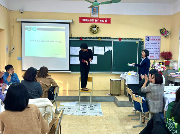 Cuối buổi hội thảo tập huấn, các giáo viên được vận dụng kỹ năng peer-assessment (đánh giá đồng đẳng) để trao đổi nhằm làm rõ nội dung của buổi tập huấn; chia sẻ những khó khăn, vướng mắc khi áp dụng những công cụ đánh giá cũng như đưa ra những góp ý mang tính xây dựng cho các đợt tập huấn sắp tới.