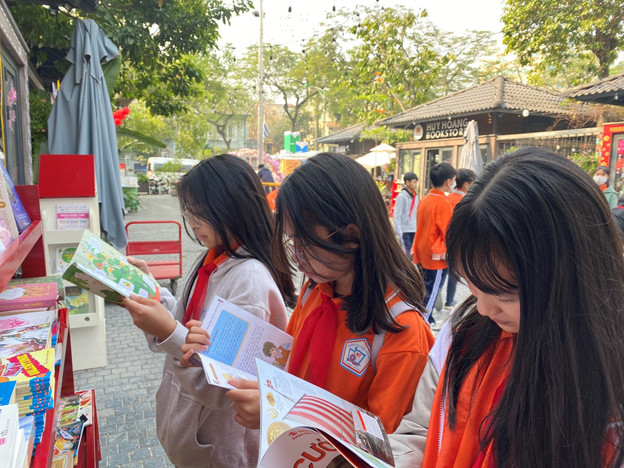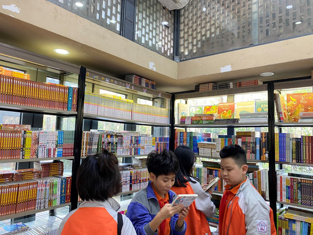 Cuối buổi trải nghiệm, các em học sinh được tham quan phố sách đầu tiên ở Hà Nội, địa điểm tập trung rất nhiều gian hàng của các nhà xuất bản cũng như những công ty sách có tên tuổi trong cả nước.