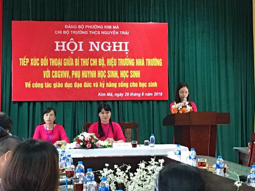Chiều nay (29-8-2018), trường THCS Nguyễn Trãi đã tổ chức Hội nghị đối thoại giữa Bí thư chi bộ, Hiệu trưởng nhà trường với cán bộ giáo viên, nhân viên, phụ huynh và học sinh về công tác giáo dục đạo đức và kĩ năng sống chon học sinh nhằm thực hiện, phát huy tính dân chủ; lắng nghe ý kiến, nắm bắt tâm tư, nguyện vọng của giáo viên, phụ huynh và học sinh để giúp nhà trường có những điều chỉnh các hoạt động kịp thời nhằm đáp ứng nhu cầu dạy và học, nâng cao chất lượng giáo dục toàn diện cho HS.