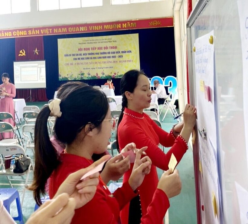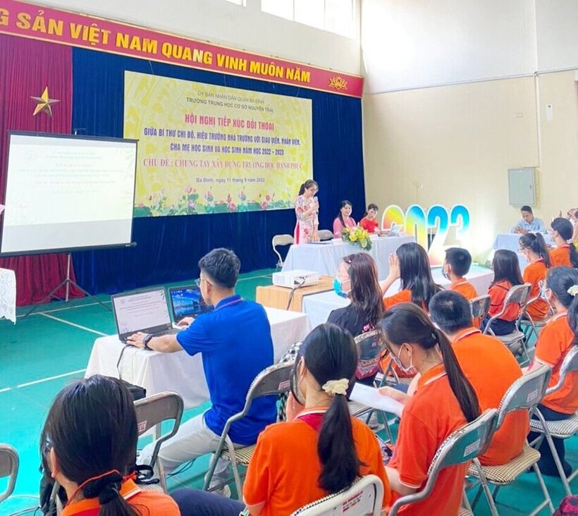 Nhằm thực hiện, phát huy tính dân chủ, lắng nghe ý kiến, nắm bắt tâm tư, tập hợp sức mạnh đoàn kết giúp nhà trường thực hiện thành công Dự án Trường học Hạnh phúc. Sáng ngày 11/09/2022 trường THCS Nguyễn Trãi tổ chức hội nghị tiếp xúc, đối thoại giữa Bí thư Chi bộ, Hiệu trưởng nhà trường với giáo viên, nhân viên, cha mẹ học sinh và học sinh về xây dựng Trường học Hạnh phúc.