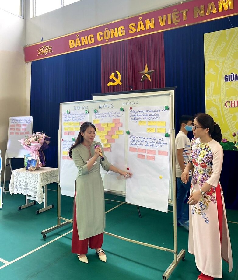 Trong phần hoạt động nhóm, các nhóm PHHS, GVNV và học sinh đã tích cực chia sẻ, bày tỏ quan điểm, ý kiến rất cụ thể xoay quanh các vấn đề: