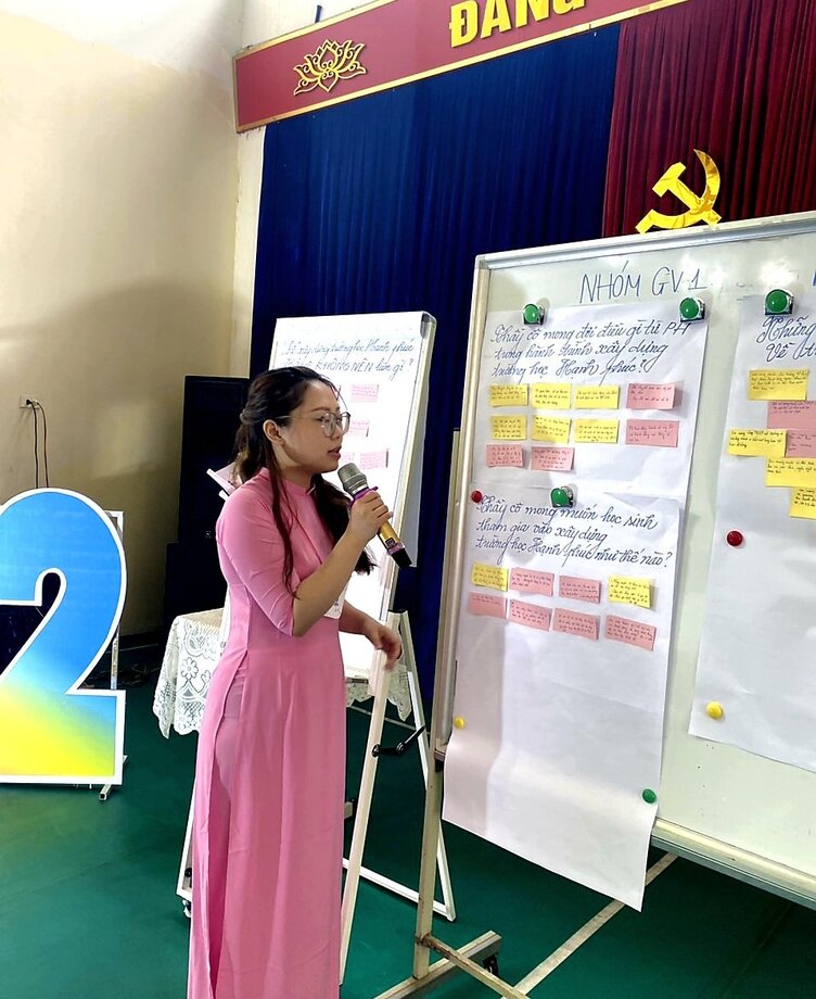 Nhiều câu hỏi, băn khoăn, vướng mắc của giáo viên, nhân viên, CMHS và các con học sinh đã được cô giáo Lê Hoàn Châu – Bí thư chi bộ, hiệu trưởng giải đáp cặn kẽ, từ đó thống nhất nhận thức và hành động chung xây dựng Trường học Hạnh phúc năm học 2022-2023.