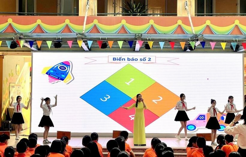 Học sinh được tham gia các trò chơi để nắm vứng hơn về luật an toàn giao thông