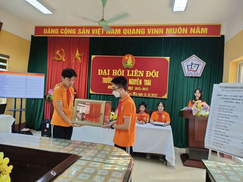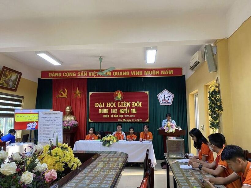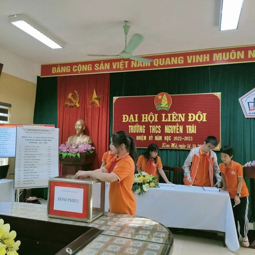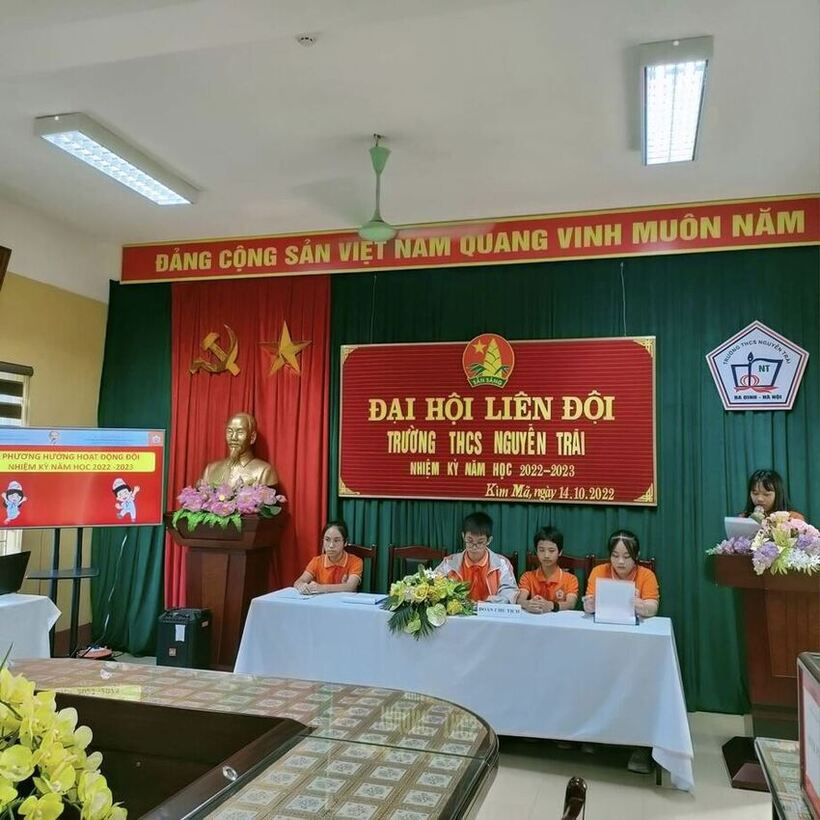 Thực hiện chương trình công tác Đội và phong trào thiếu nhi của Hội đồng Đội Quận Ba Đình năm học 2022 - 2023, Kế hoạch công tác Đội và phong trào thiếu nhi của Liên đội Trường THCS Nguyễn Trãi. Được sự nhất trí của Ban giám hiệu nhà trường, chiều nay ngày 14 tháng 10 năm 2022, Liên đội Trường THCS Nguyễn Trãi long trọng tổ chức Đại hội Liên đội nhiệm kỳ năm học 2022 - 2023 nhằm tổng kết công tác Đội năm học 2021 - 2022, xây dựng dự thảo phương hướng hoạt động Đội và bầu ra Ban chỉ huy Liên đội nhiệm kỳ năm học 2022 - 2023.