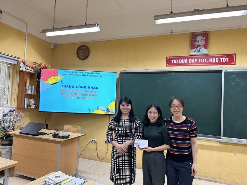 Ban chấp hành công đoàn và ban giám hiệu nhà trường cũng biểu dương và khen thưởng các thầy cô hoàn thành xuất sắc nhiệm vụ trong quí I/2023: cô giáo Nguyễn Thị Vân Anh, cô giáo Bùi Thị Ngà, cô giáo Đỗ Thị Phương Thảo.