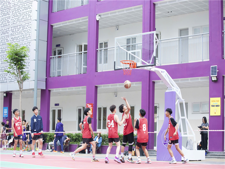 Nơi đây chắc chắn sẽ là một địa điểm lý tưởng cho các bạn học sinh say mê rèn luyện môn bóng rổ cả trong giờ học thể chất và sau các giờ học văn hóa với các huấn luyện viên bóng rổ chuyên nghiệp; và tất nhiên phụ huynh cũng có thể là những fan cuồng nhiệt cho các cầu thủ nhí của trường tím chúng tôi!